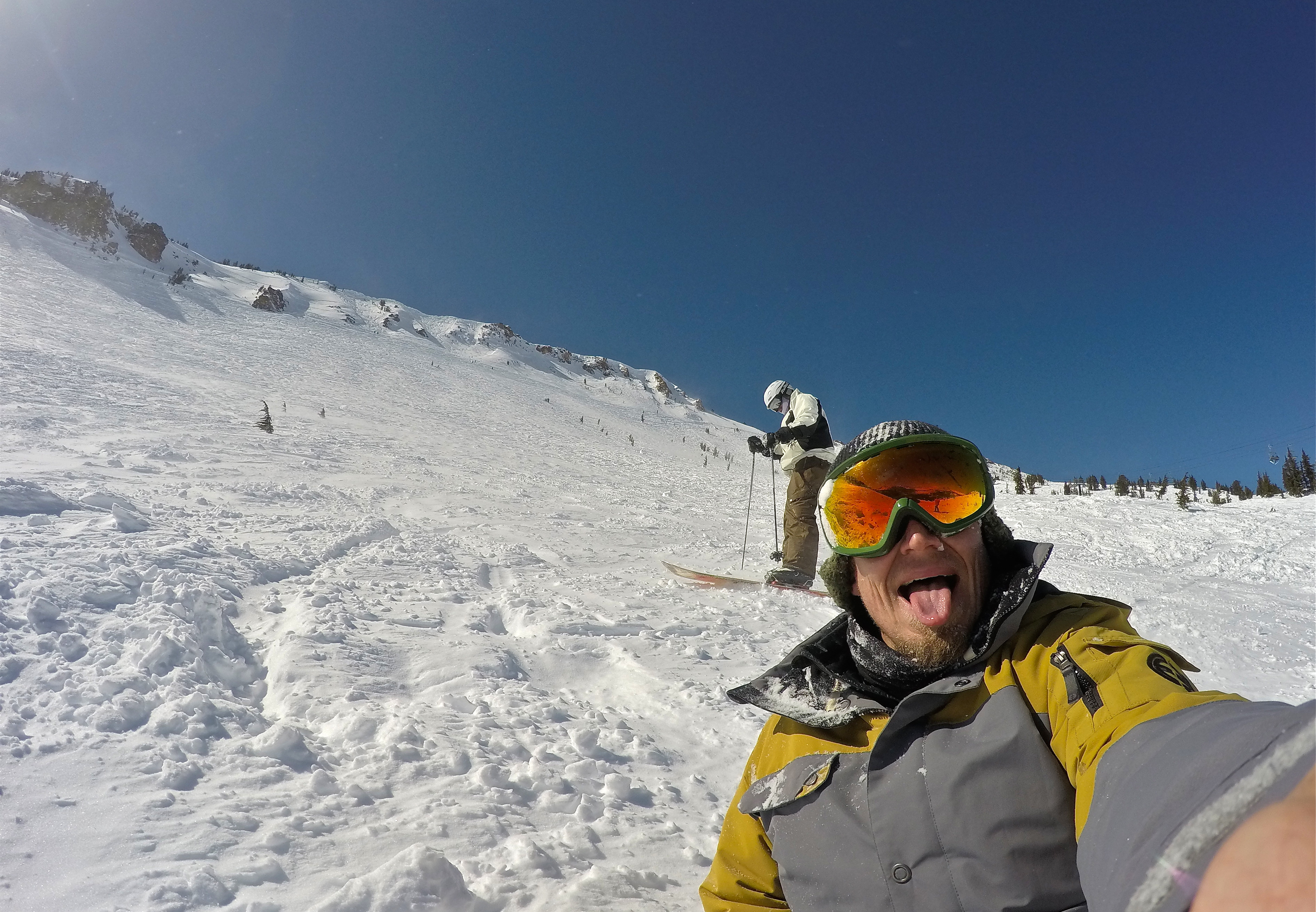 The food there is fairly pricy so we usually bring our own lunch and a few beers and just stash it in our locker until lunch time. We like to ski hard all morning and take a late lunch. So after lunch we're usually more laid back and we just kinda cruise around the mountain for the last couple hours. After a long day of snowboarding your legs can get pretty tired, but I usually like to ski all the way to the end of the day.