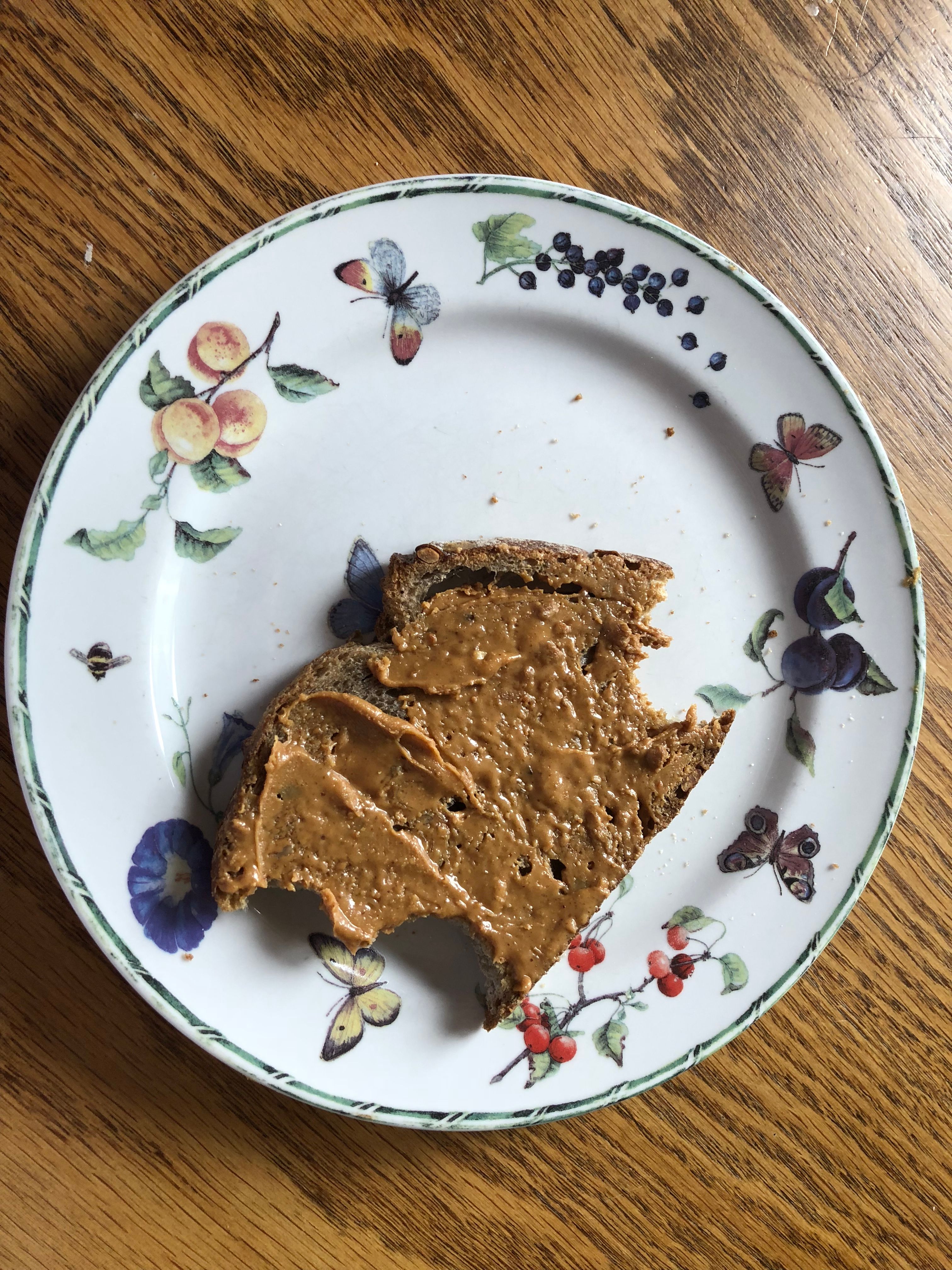 My breakfast from this morning. (Boterham met pindakaas). 🥪