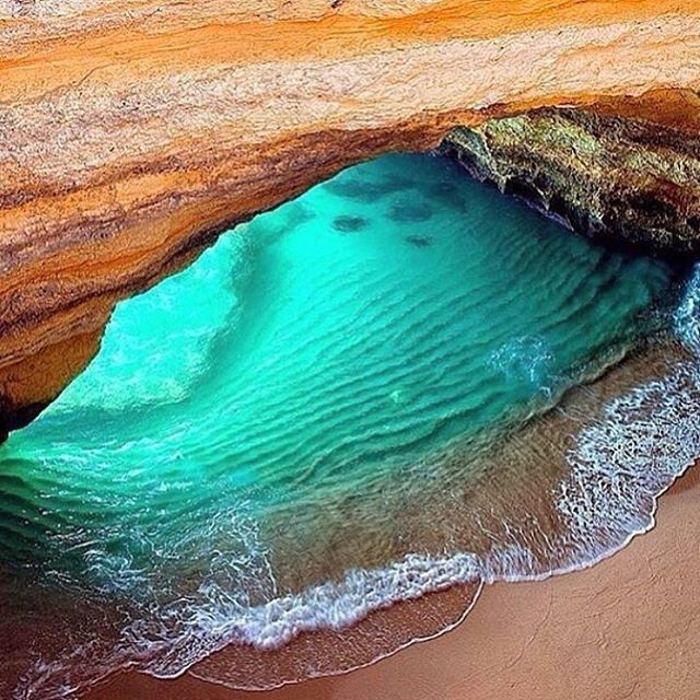 The result is a kind of beach inside a cave, where there is only a little bit of sun in the early hours of the day, when the sun sets on top of the oculus at the top, an oculus that also has created naturally thanks to the shock of water.