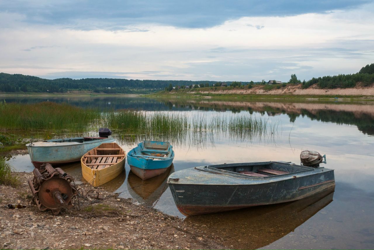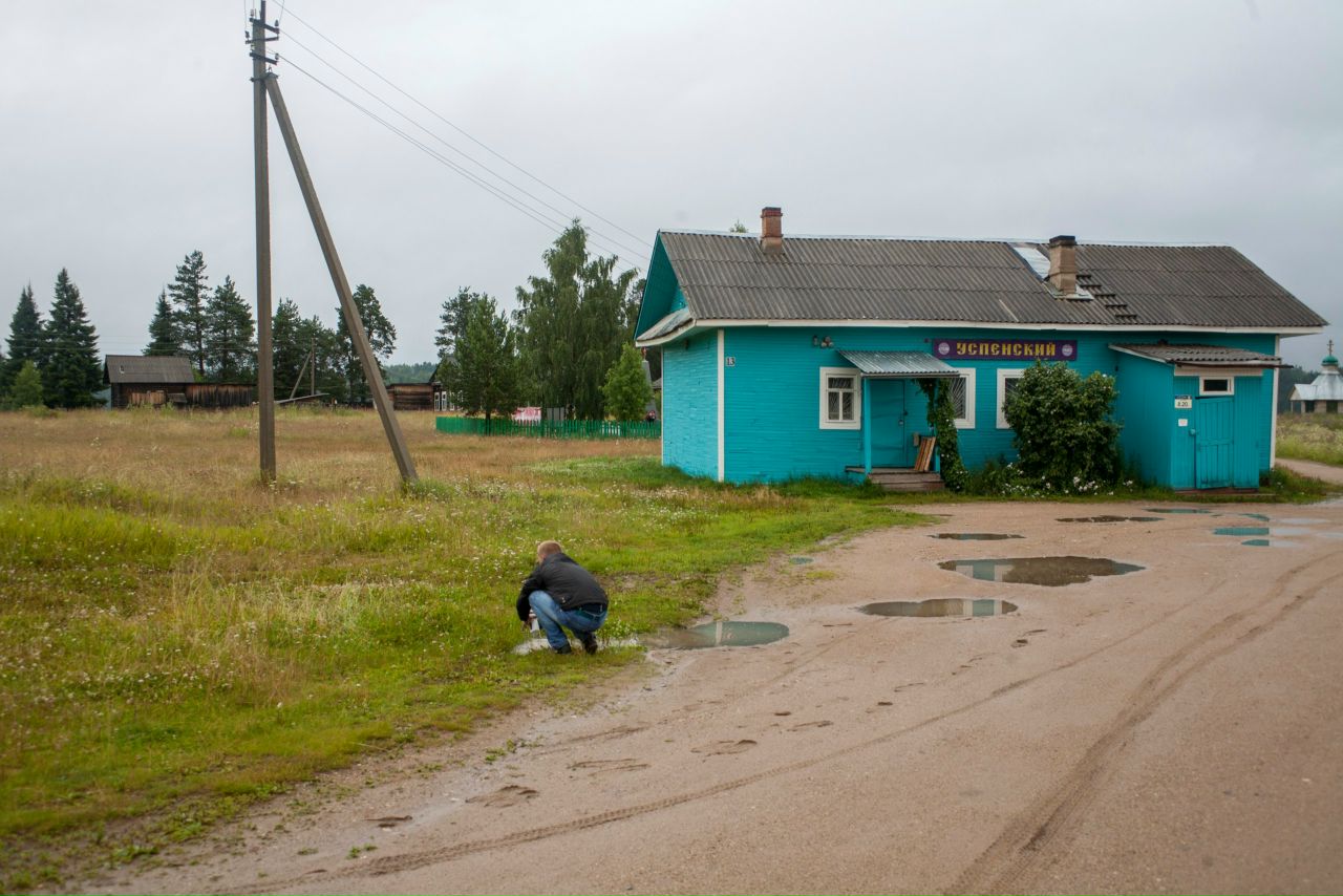 Two more villages were waiting for us: Upper Kichuga and Lower Kichuga. In the very last village, near the last house there was a married couple of old age, we asked how to continue driving to the next village. We were told that there was no road - everything was overgrown with forest. We decided to make sure, drove forward and it turned out to be true. On the stoned shore, I did not want to go again. And besides, a storm was coming. We decided to wait out for those people who asked for directions. The woman let us into the house, she gave us tea with raspberry jam. The storm was over, we must move on. The roads are all soaked. What to do? The man told us that on that shore there is an excellent logging road that runs straight along the shore and up to Lodeika itself (a large village). And he agreed to take us there by boat. We offered money for transportation - the man also refused. At the same time, he says, I'm fishing!