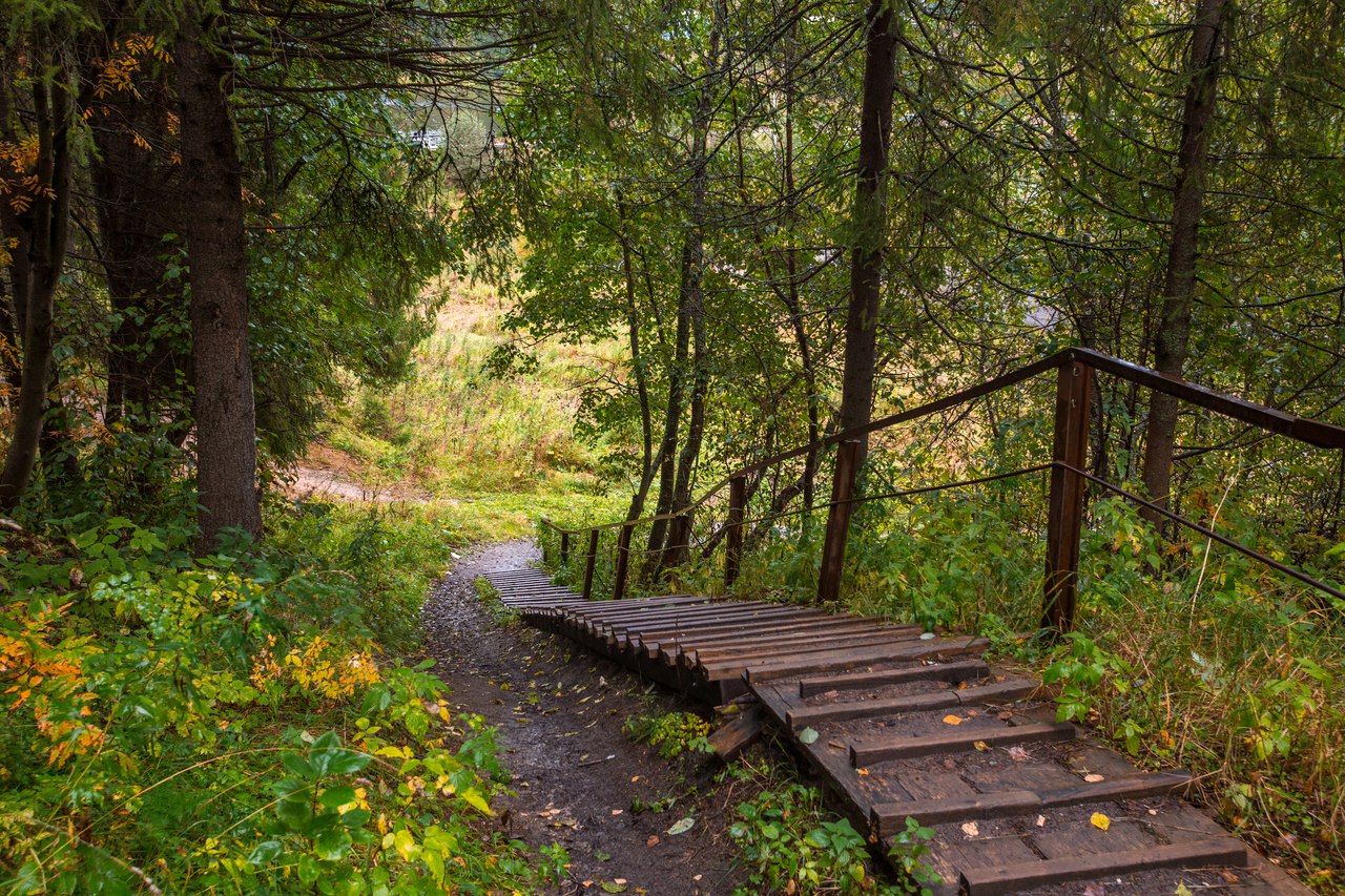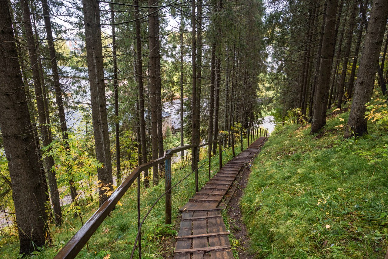 Here, for example, a newly appeared staircase that goes through the forest directly to the house.