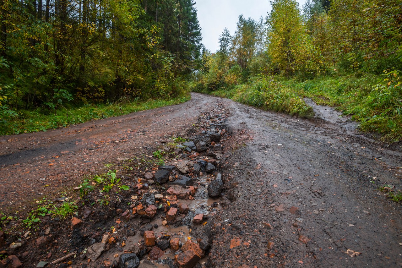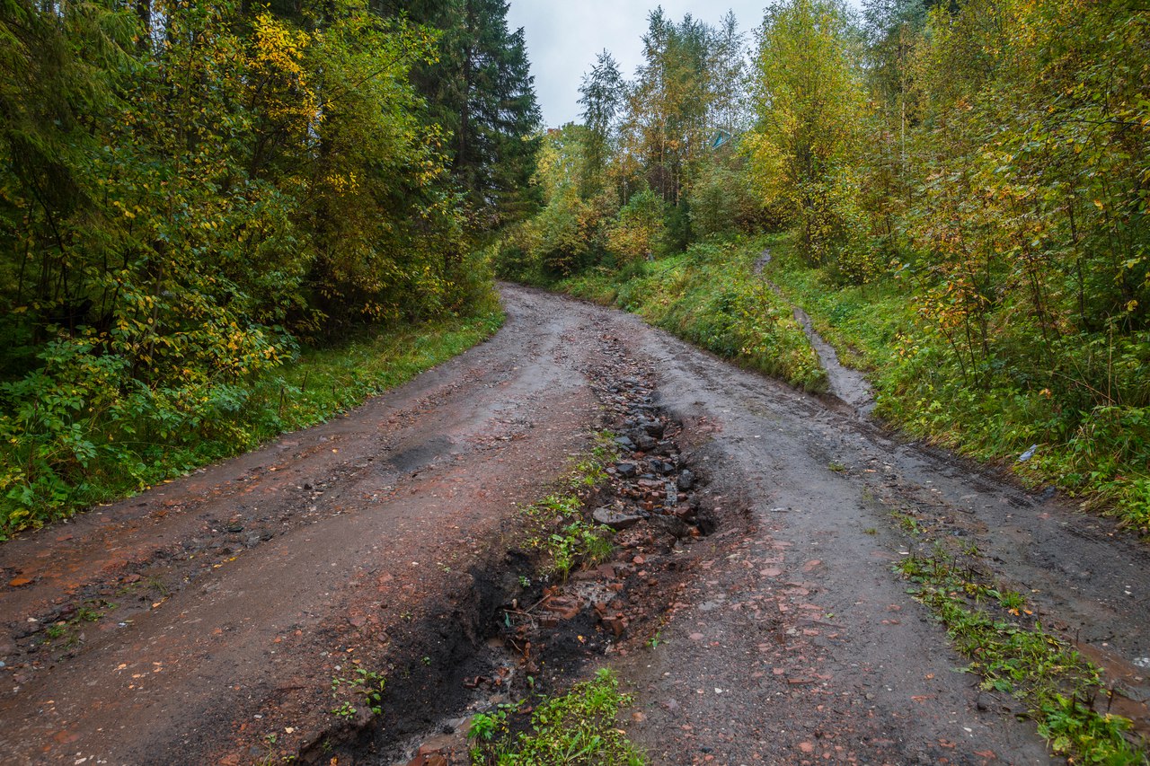 It is a pity, do not convey in the photo how steep the rise here! In winter, not every car rises in the hill, and in the summer the road is constantly washed by streams.