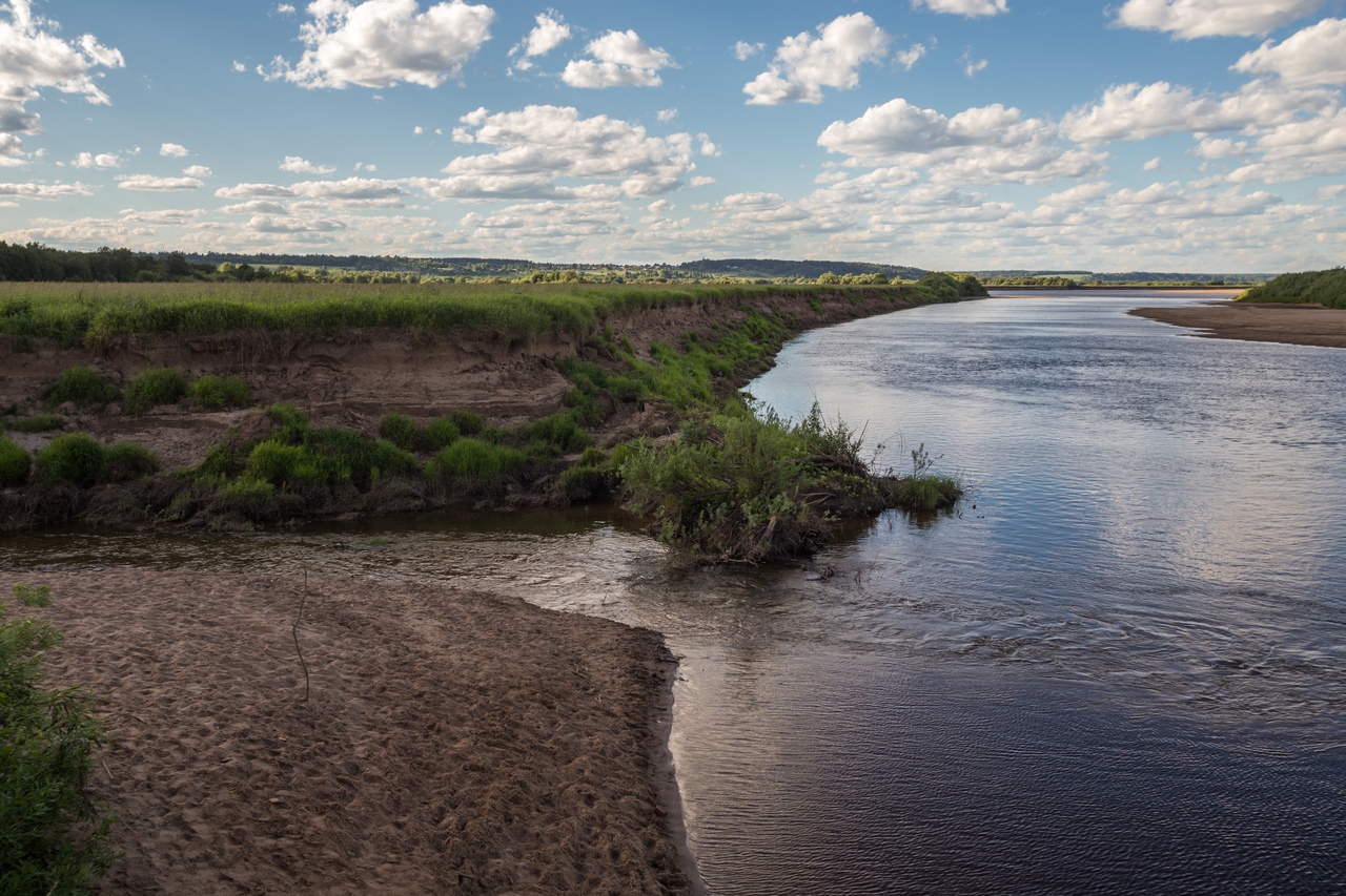 By the way, the river Shardenga used to flow into the river Yug under the village of Morozovitsa. It traveled a distance of plus 15 kilometers. A few years ago, Shardenga wanted to quickly merge with the Yug, and it changed the course. Now the Shardenga River flows into the Yug just beyond the village of Ustye-Povalikhino.