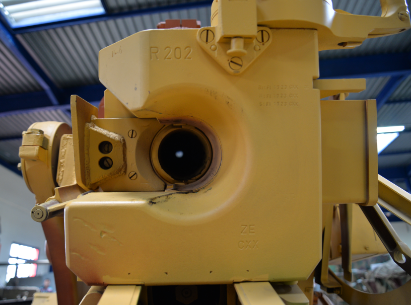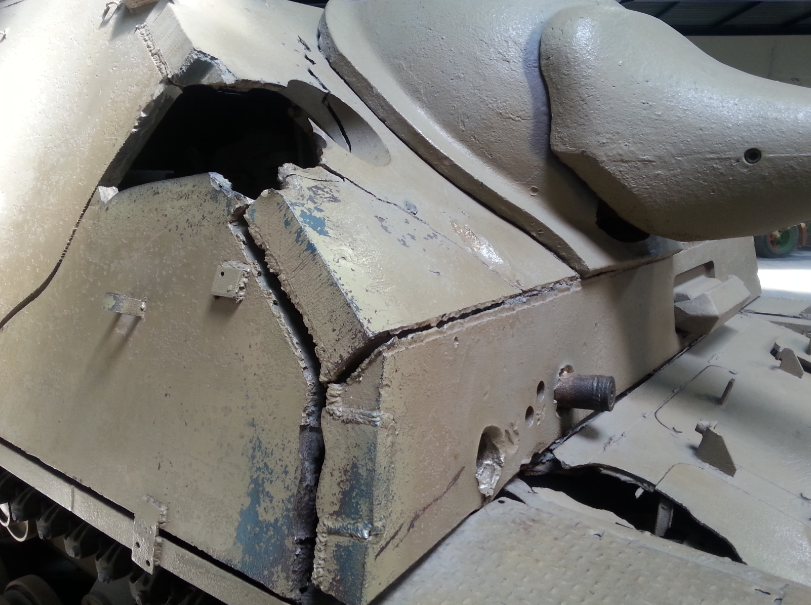 A suffered Panzerjager IV/70(A), for “Alkett”, was a cheaper production version of the long barrel Jagdpanzer IV, now at the Saumur Museum in France. Notice the penetration hole from the shell that knocked out the tank.