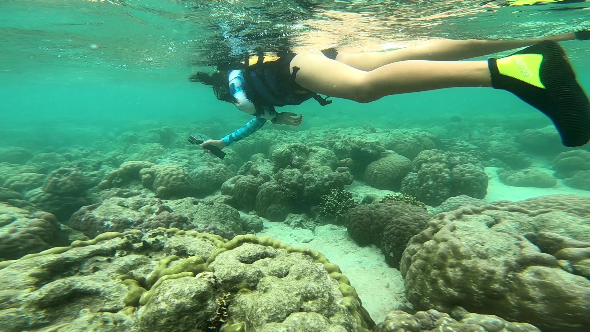 First was snorkeling and swimming. We enjoyed the water and the coral. The strong current and shallow water makes it more difficult to swim but the under water scenery is very beautiful. We saw a different kind of sea urchins with white and black color. After 30 minutes of snorkeling we head back for 15 minutes because its more difficult to fight the water current.