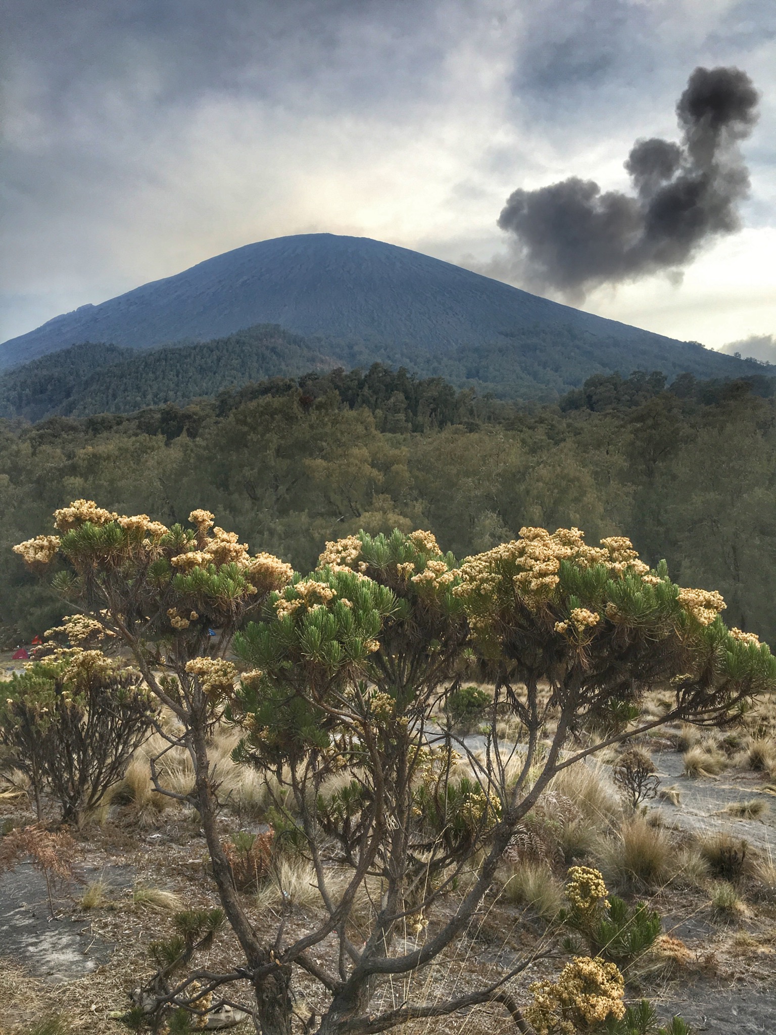 After resting 1,5 hours at the lake came 2 harder parts which took us then almost 2 hours the the last base camp kalimanti on 2700 meters where we reached around 5 once we took already pictures of the eruption on the way and waited quite long for it.