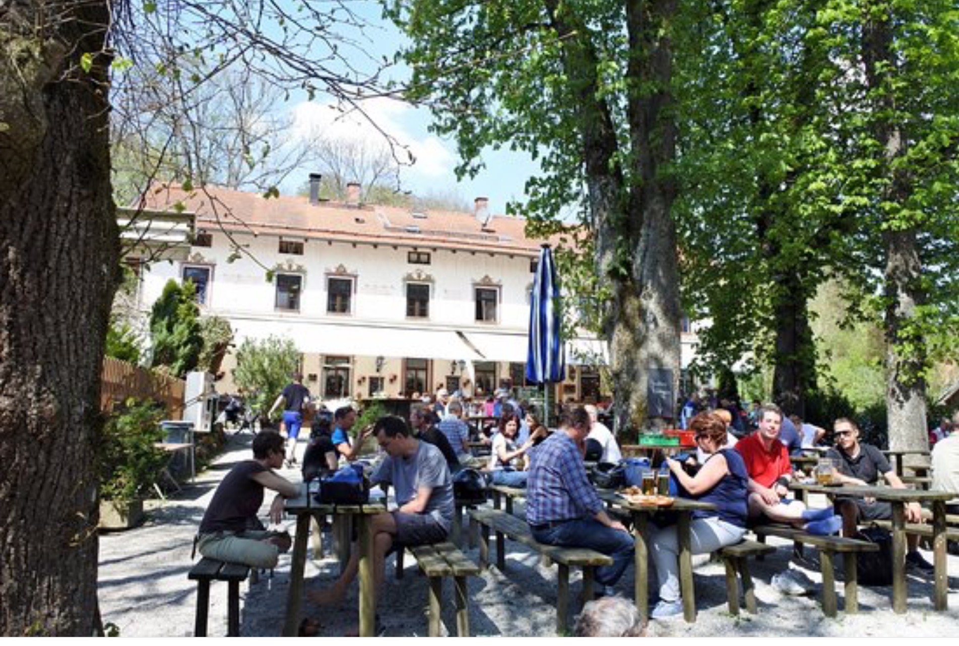 It is a pleasant and quiet ride on forest roads mostly paved but also gravel roads towards the tiny village of Leutstetten, there we stopped at the lovely beer garden to have a rest and drink and eat.