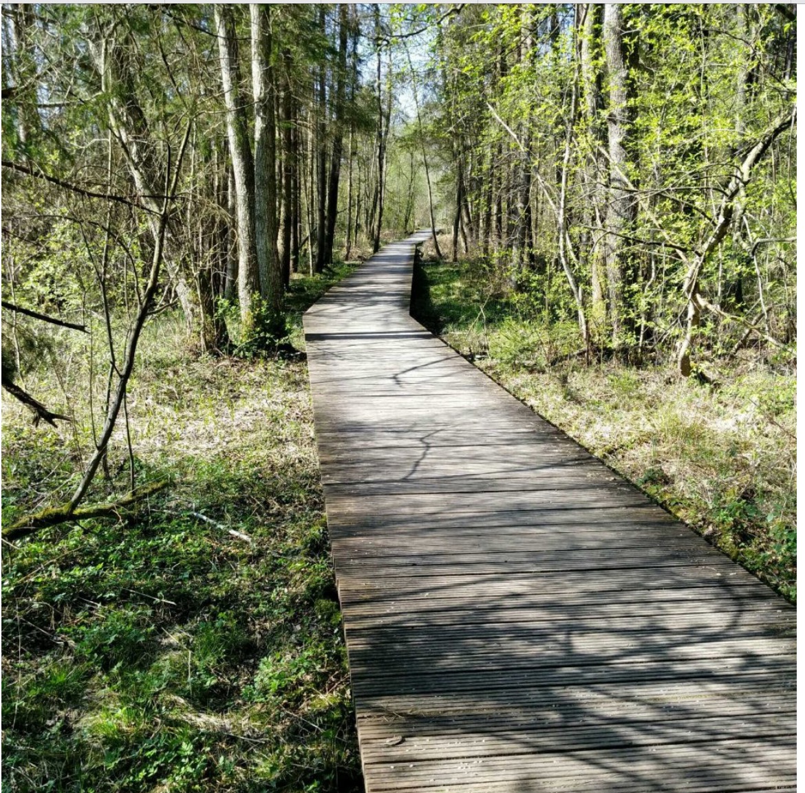 Refreshed we continued our way through the beautiful landscape that has been shaped by the last ice age. Lovely ondulated hills and moors with trees of many kinds that provide shadow to the sweating cyclist. In some places we ride over wooden boardwalks because the ground would be too marshy.