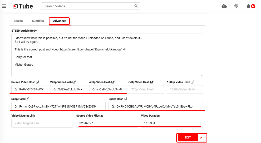 Would you like to see how I messed up uploading my first Dtube video, got the wrong video on Dtube and then replaced it with the correct one, because this might be useful for you?