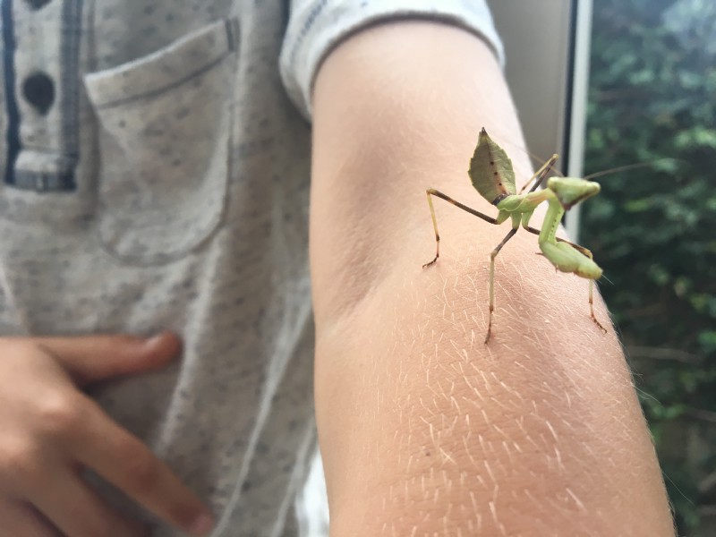 I saw a lot of cicadas and I caught two. I caught a lot of praying mantises too. They wobbled to look like a leaf.