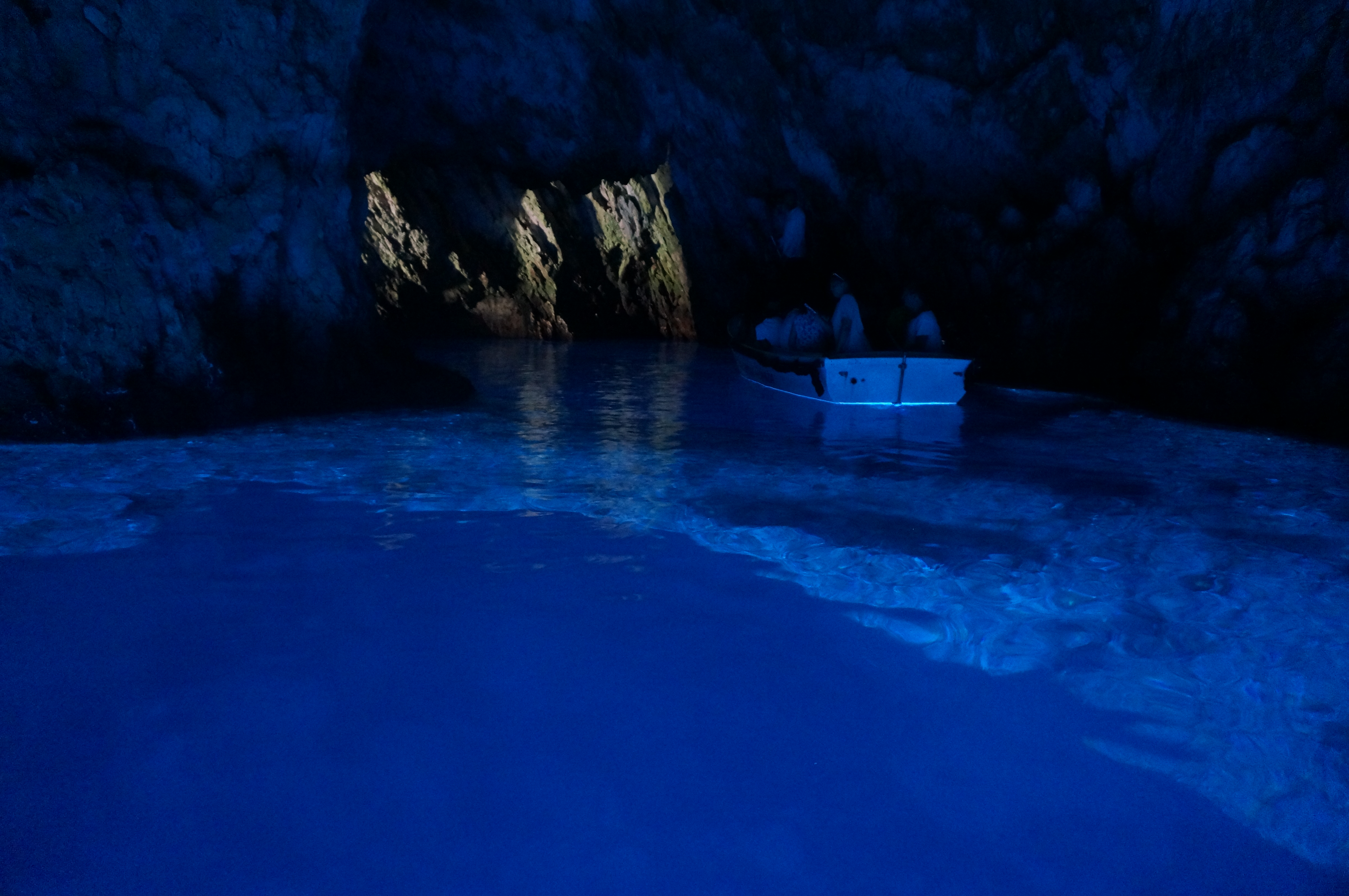 After lunch we went to the Blue Cave - an extremely famous tourist attraction in Croatia. They have millions of visitors every single year, but the island itself only has 9 inhabitants. Everyone else just comes to visit the cave and then leave again! A small boat, like the one here, takes you into the very small cave entrance (less than 1.5m high) and into the sea cave. Once inside my breath was taken away by the beauty of the sight. The entire cave was lit blue by the water below us.
