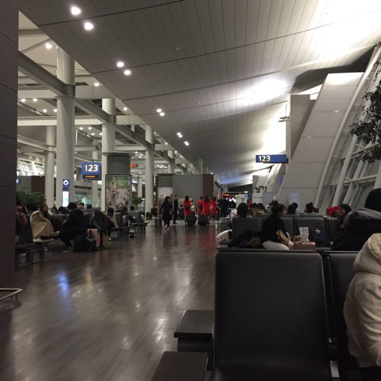 123번 게이트 앞에 자리잡고 앉았다