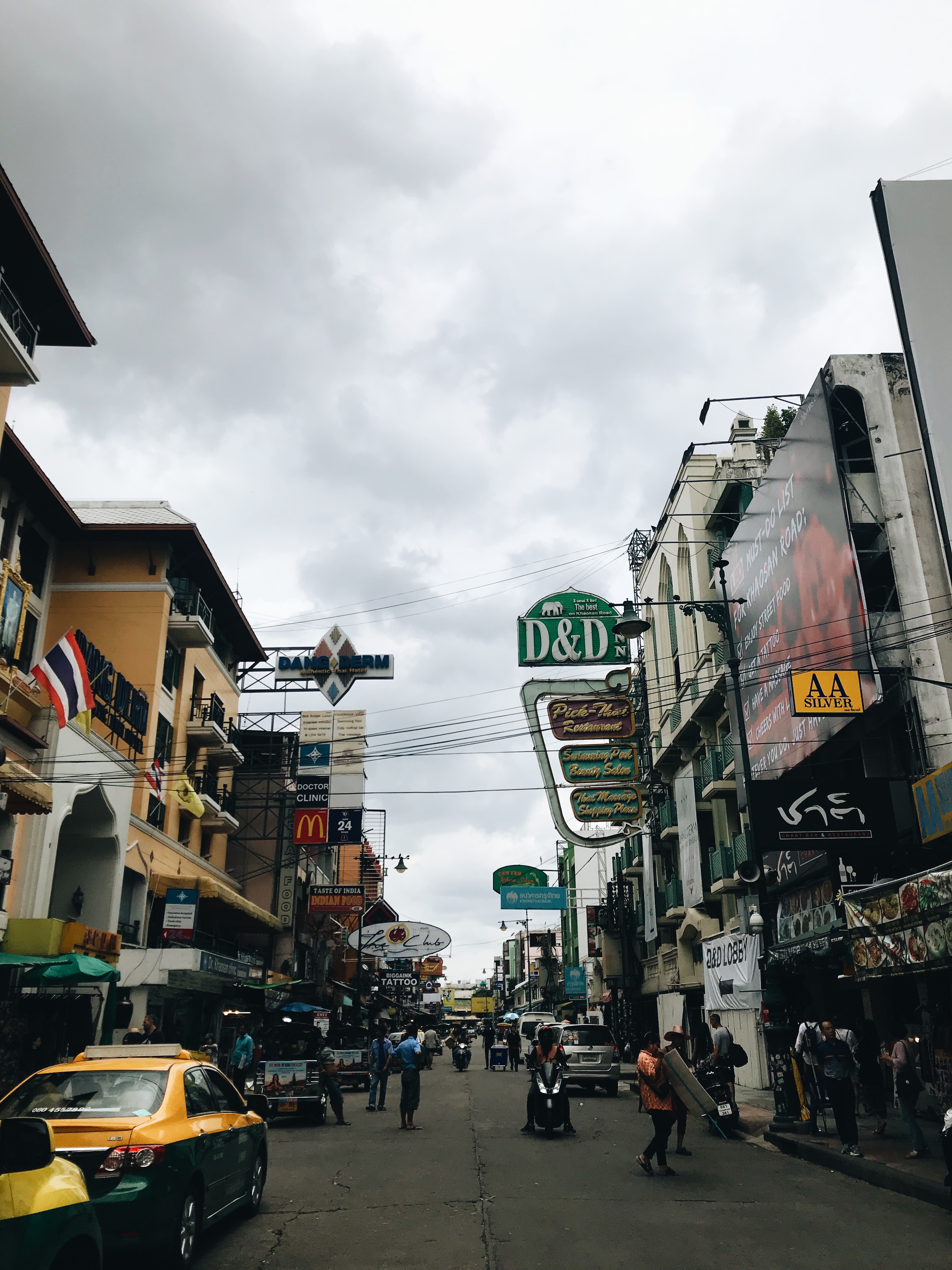 this is Bangkok’s most famous street; Airport bus-Khao San road 60 ฿ and 45 minutes on the way (they drove back 1, 5 hours, traffic jams, and people tensed, afraid to be late for the flight, so count, taking into account that the bus itself runs once an hour)