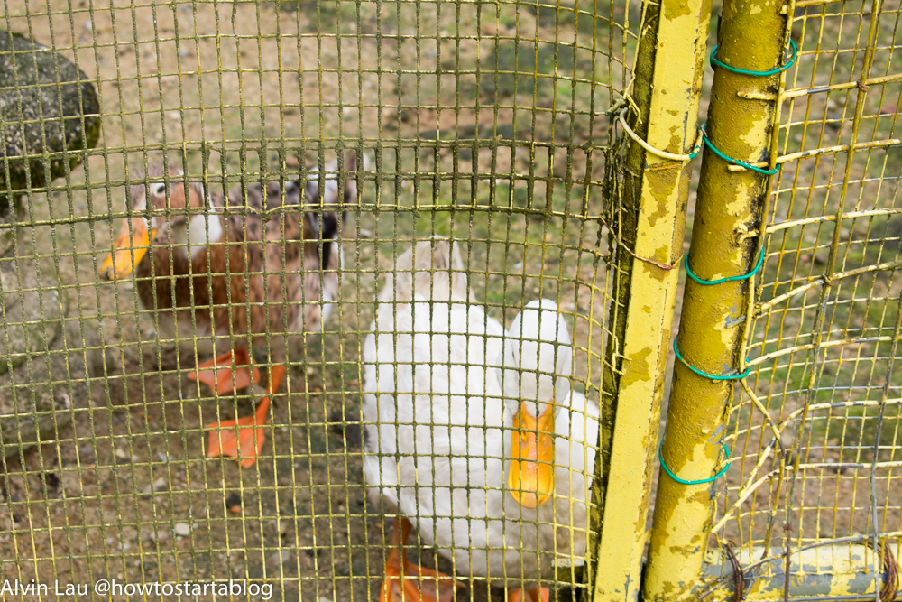 We found a cage (or what's the word for it) with ducks and birds in it. They thought we were gonna feed them. Too bad.