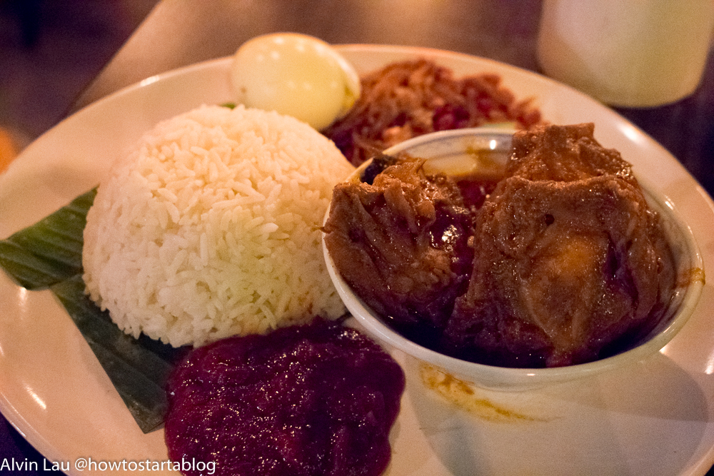 Nasi lemak and fried battered mushrooms..interesting combo lol...