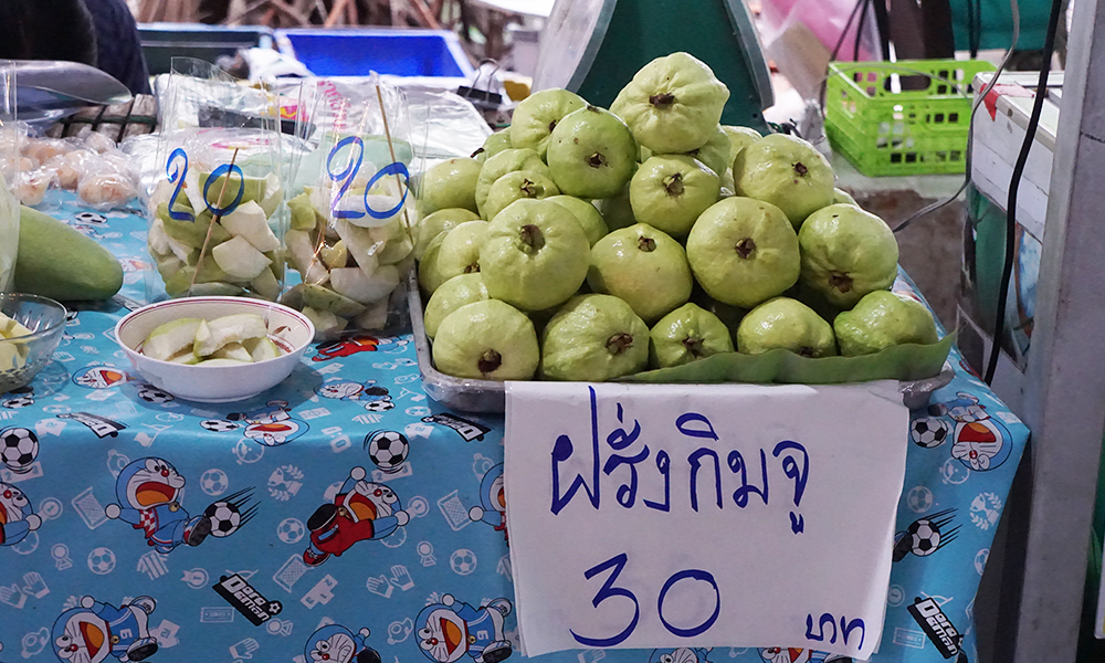 This picture shows the fruit that is the fresh guava (Thai people call “Farang”). Price of the guava at here is very low (about 1 usd per kg).