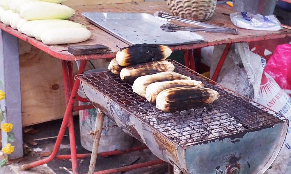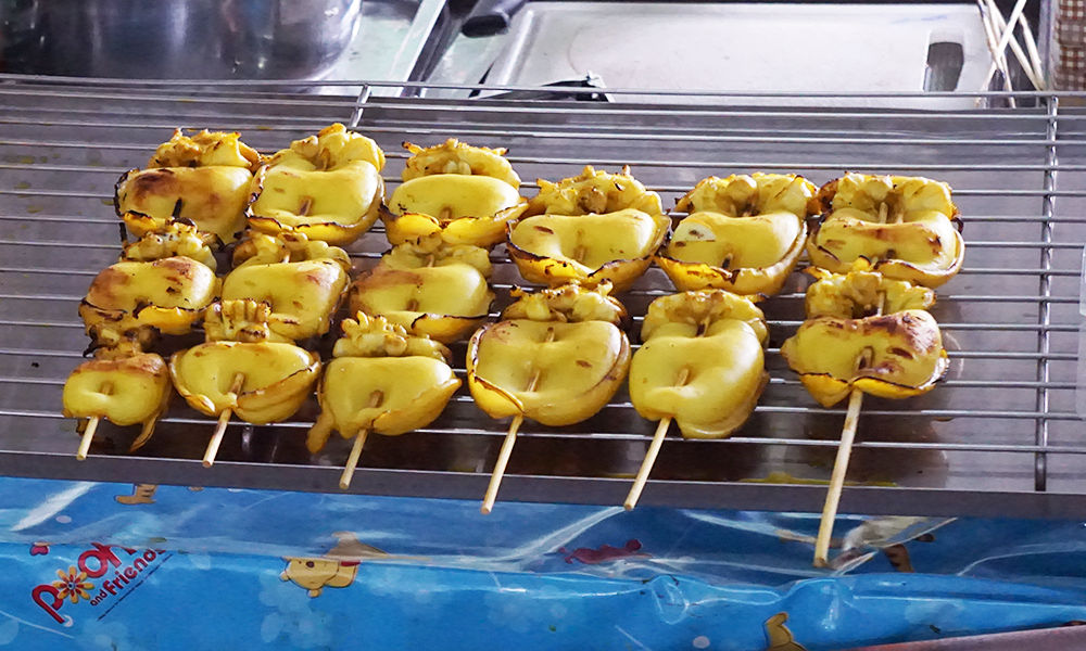 For this shop is selling about grilled corn that smell i very sweet-scented overspread the market. Price of grill corn is very low that only 10 baht. (0.3 USD per piece)