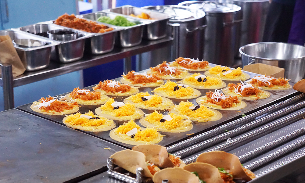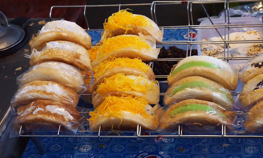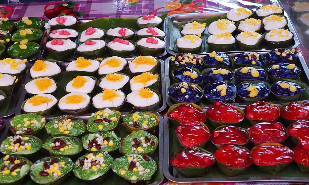 Dressert Shop has the wonderful color and look delicious. This dessert is called “Kanom Beuang”.