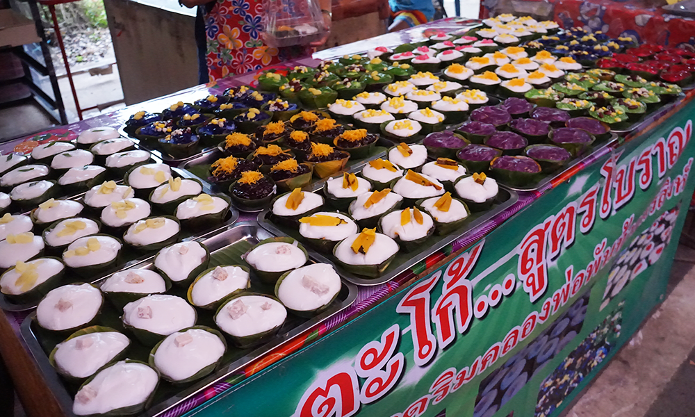 The final shop of today is the dessert shop which have the many types of the desserts that is the choices of the customer to buy them. This is the old shop at Phanthai norasing area, they sell the dessert for a long time around 30-40 years ago. The price is very cheap that is bout 15 Baht per piece.
