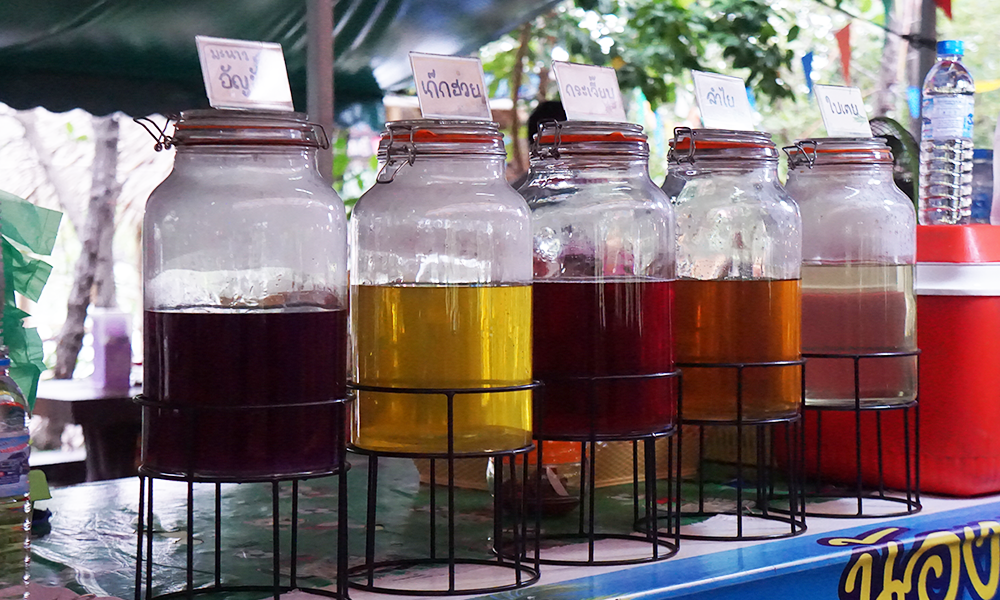 This shop sell about herbal drink that look delicious so much. This shop have the herbal drink such as Butterfly pea juice, Chrysanthemum tea, Rosella juice, Longan juice and Pandan juice etc. The price of a glass of herbal juice is only 10 Baht (0.3 USD per glass).