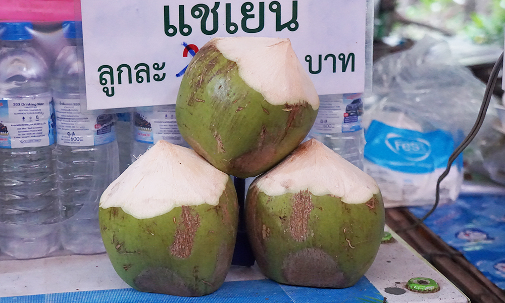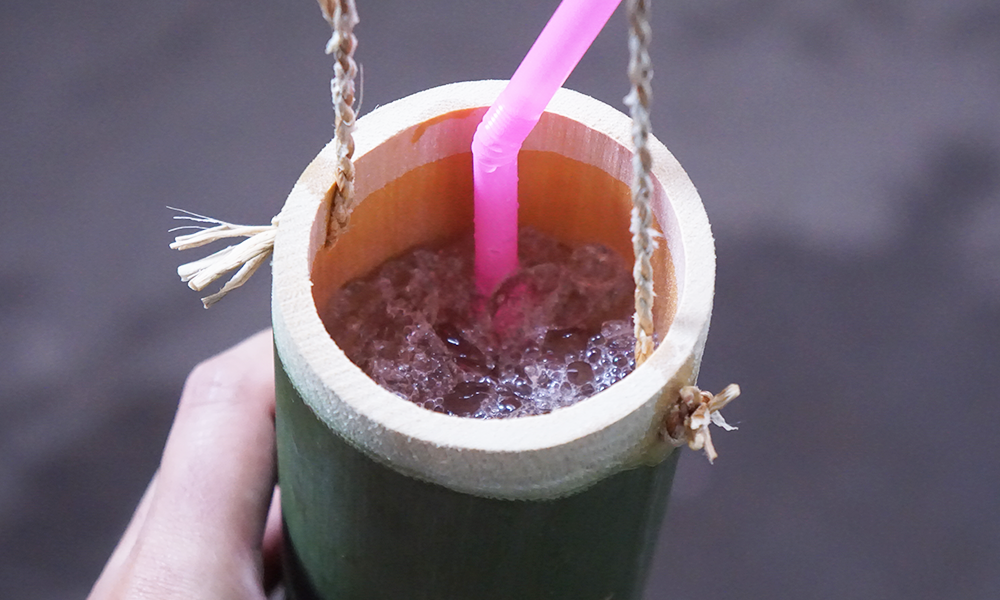 The next shop are catching our eyes that shop is the palm juice shop because of we very like it so much. The package made from bamboo that we can take it back to home (like the souvenir). The price of the bamboo glasess of palm juice is 30 Baht. (1USD)