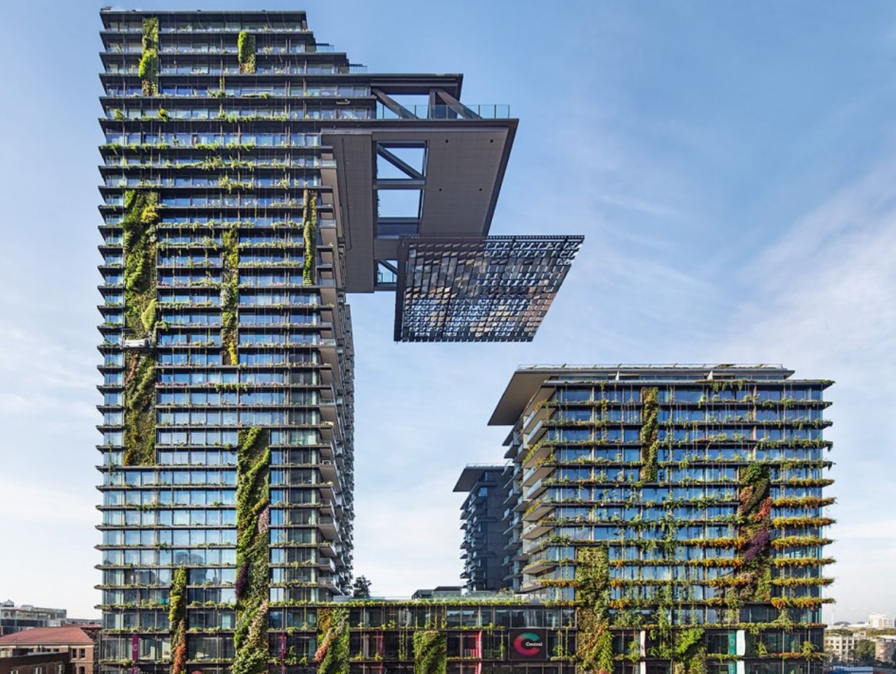 The project includes the award-winning high-rise building One Central Park, an apartment complex known for its hanging vertical gardens.