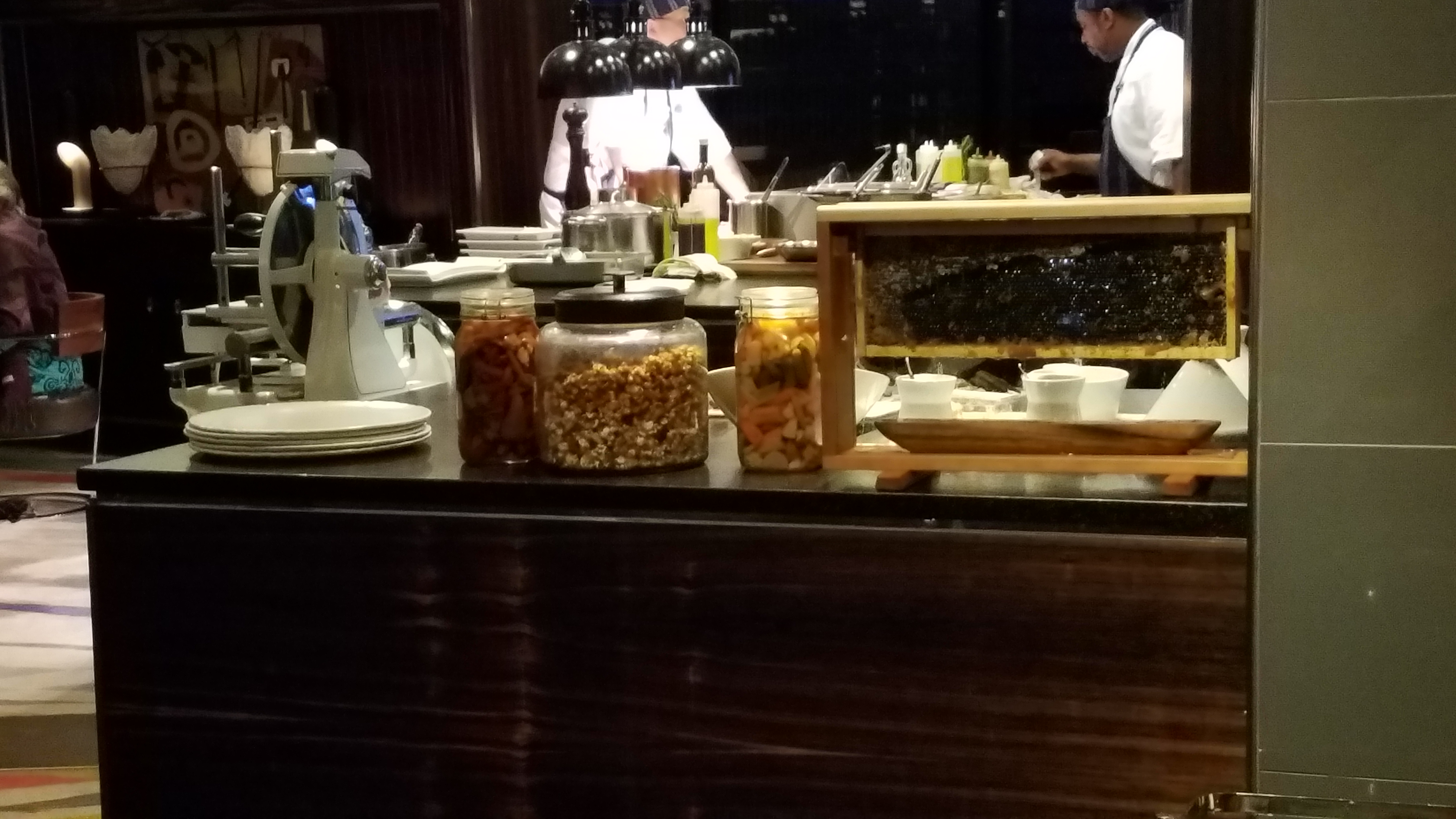 There was actually honeycomb with honey on that cheese board up above, you can see their honeycomb that the are slicing it right off from in this view.