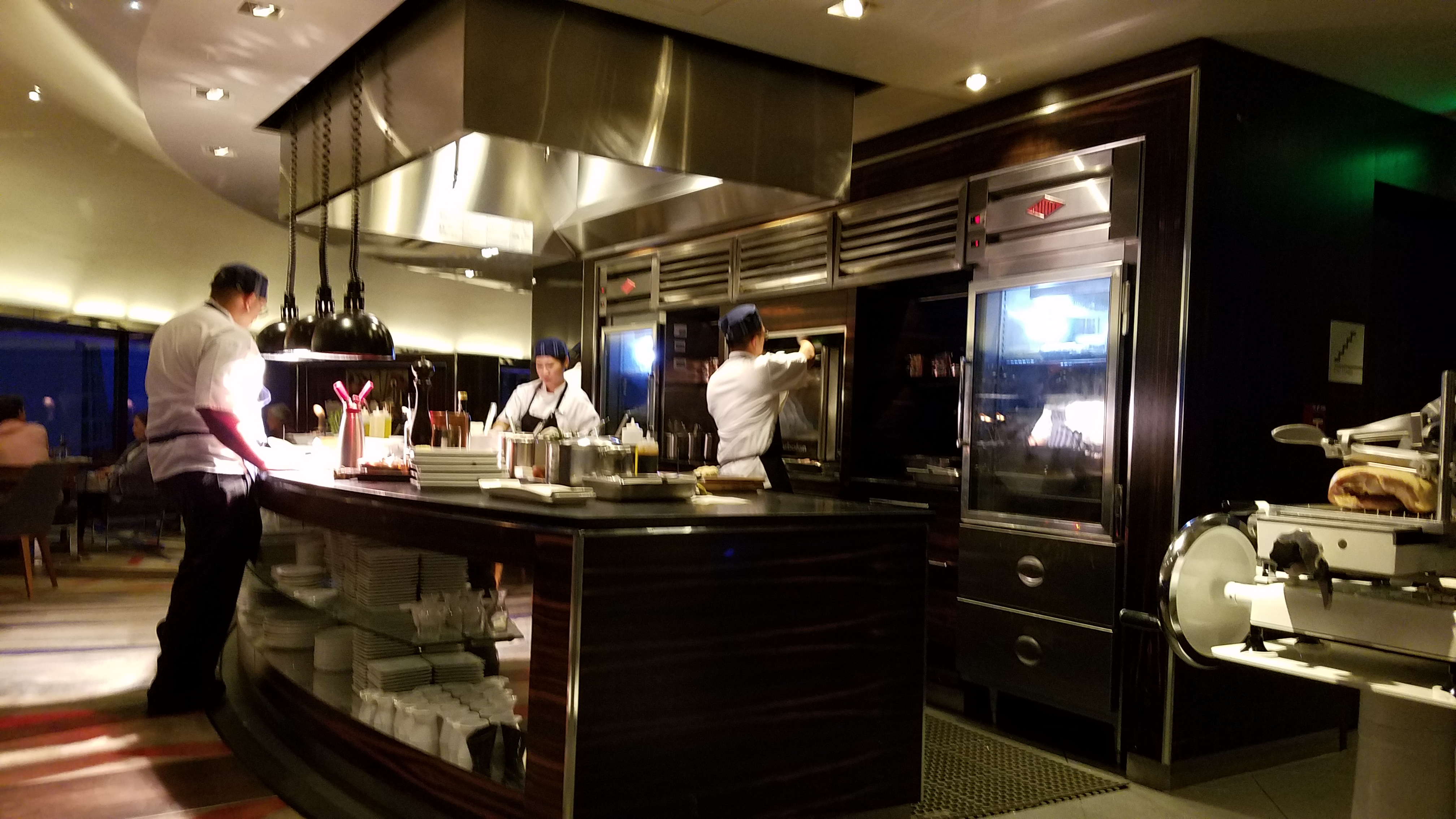 You can see the inside of the restaurant seemingly moving around you, but you are actually the one moving internally. At one point, I could see this, just steps from our table.