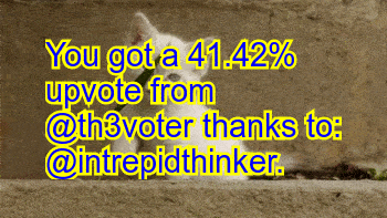 You got a 41.42% upvote from @th3voter thanks to: @intrepidthinker!