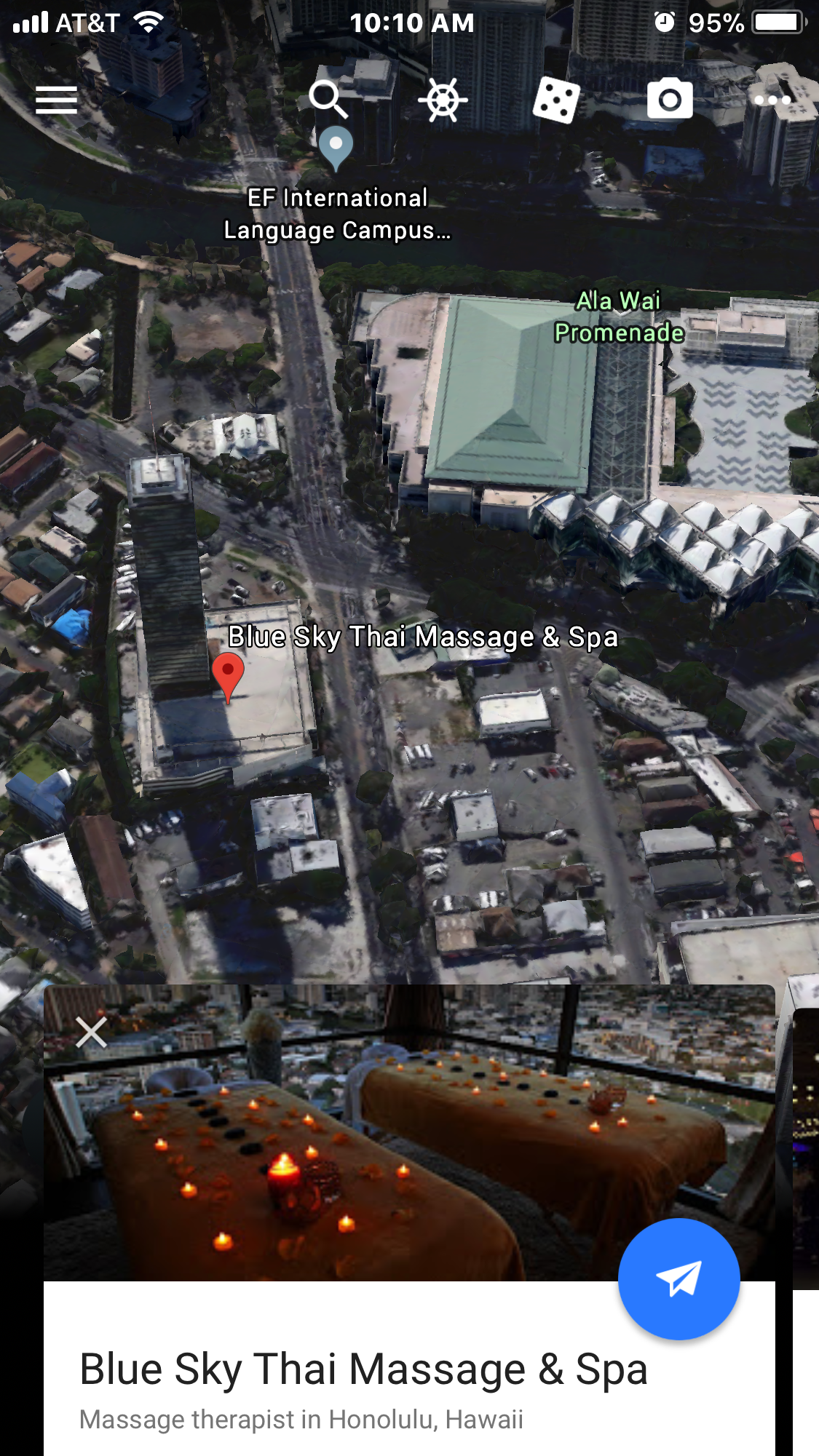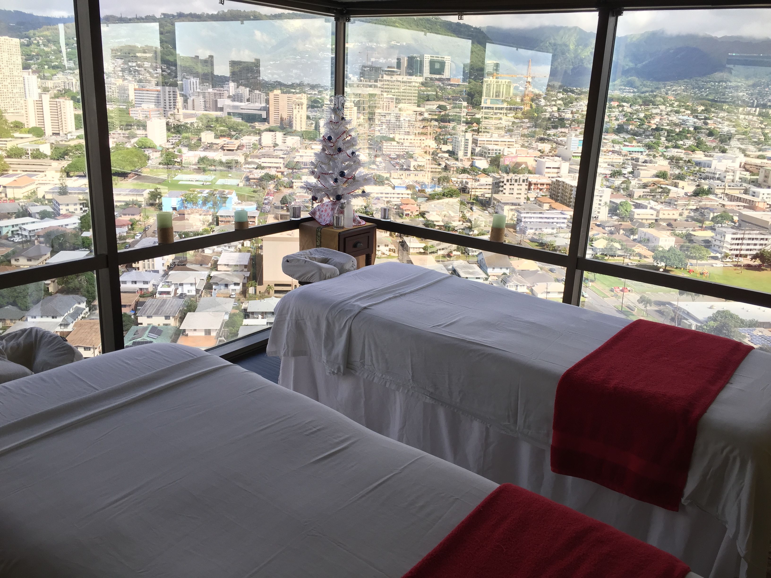 That green roof is of the Convention center and Waikiki over the Ala Wai canal. The place is small but can accommodate 6 spaces at any one time. The folks working here are very professional with Thai massage experience. Yes, I’ve been coming more than 15 times in the last year.