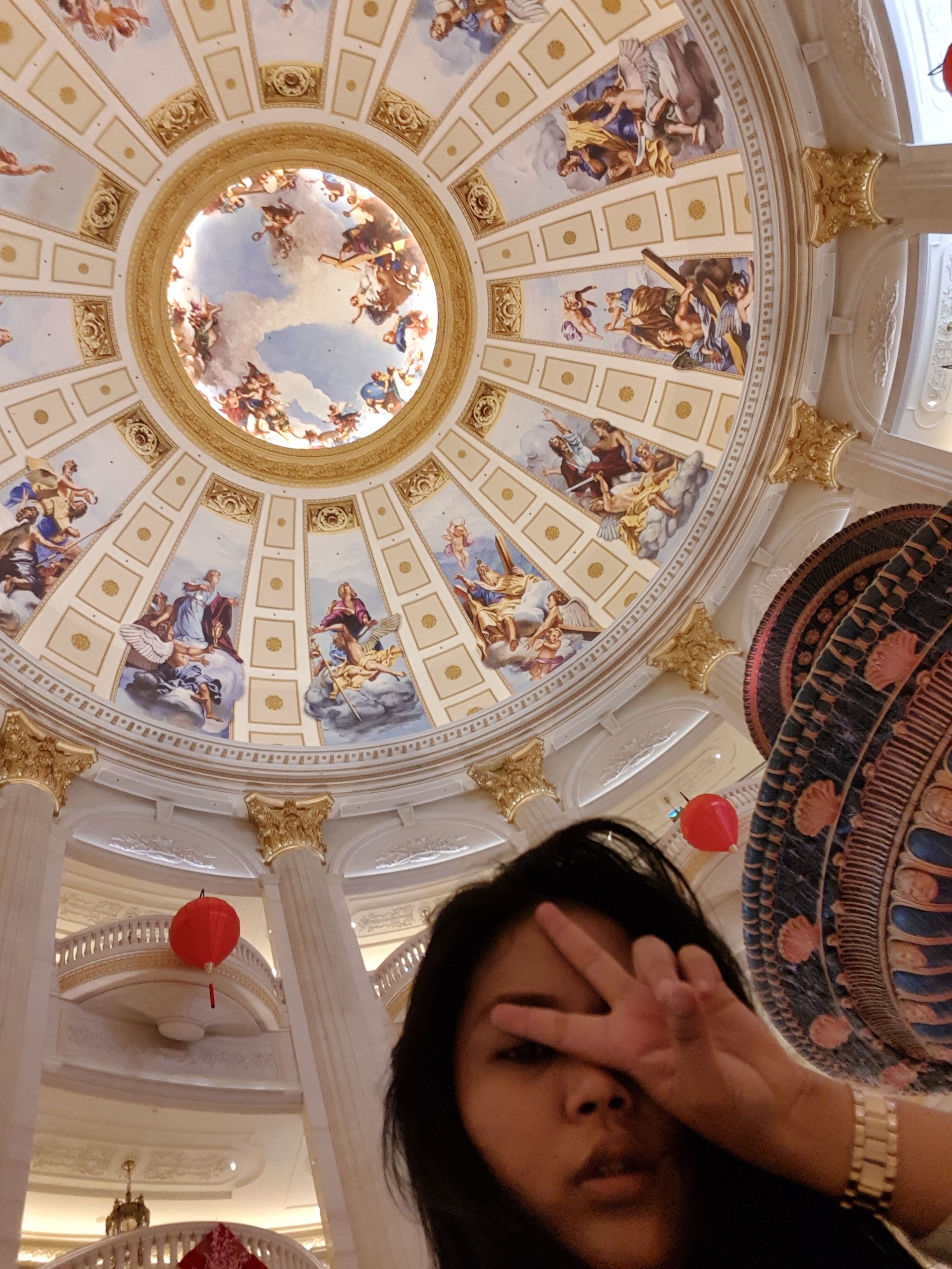This hotel is like "The Venice Grand Canal Mall of the Philippines" but this one was way way way way way better than what we have in the Philippines. (I'm sorry but I need to be honest). By the way, I’m here to look for Go Jun Pyo of Boys Over Flowers. HAHAHAH. While walking through the canal my eyes was pleased with such a beautiful atmosphere - the ceiling. The ceiling was a painting and it feels like walking outdoor, but it is indoor. I felt like the clouds of this painting is coming after me! Hahahaha. Amazing!! I'm sorry I've been using the amazing word on this blog but indeed I WAS REALLY AMAZED by this Hotel and their GONDOLA DRIVER - Handsome!