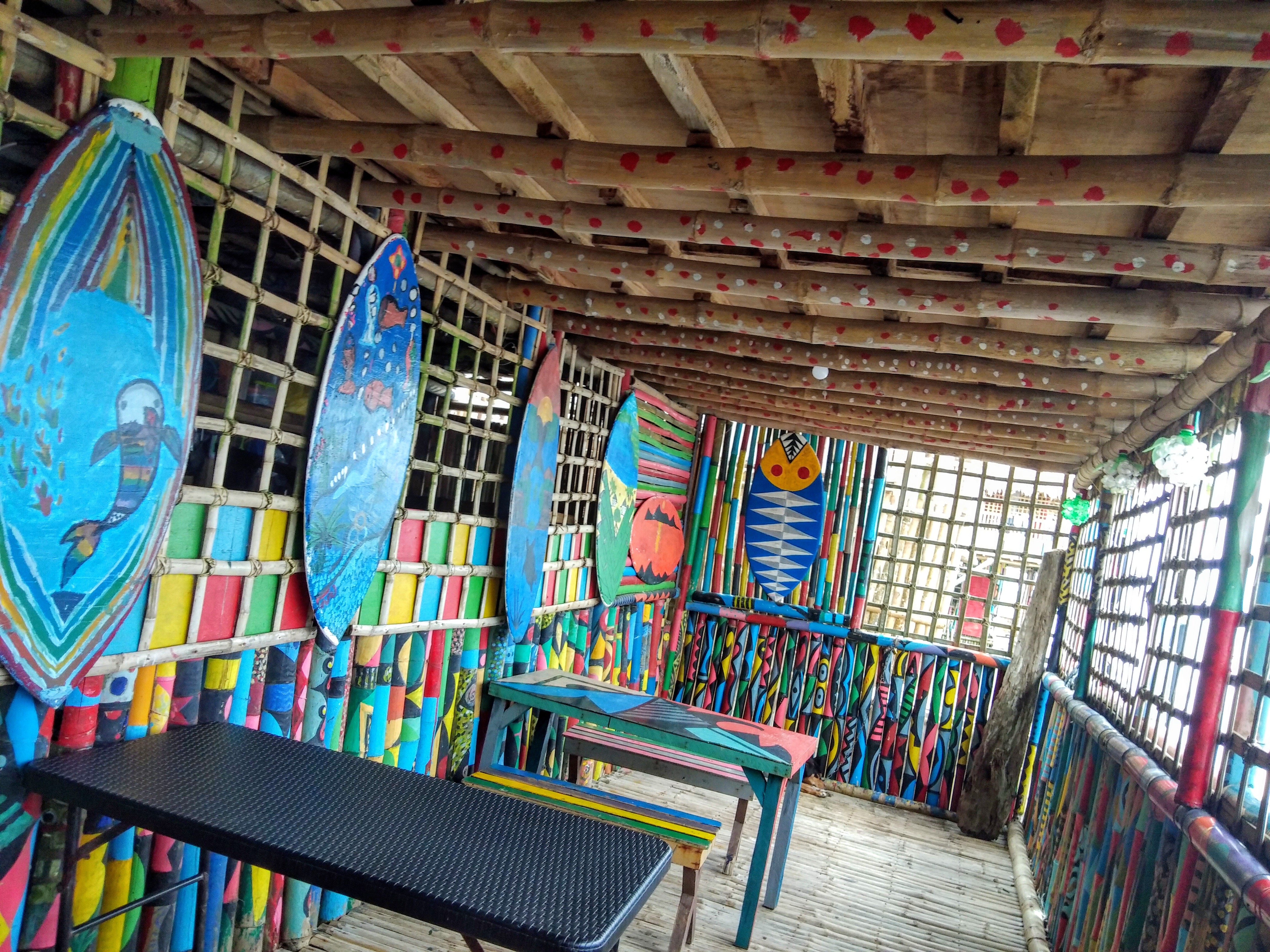 Nunelucio is a well respected contemporary artist since 1970's. Nunelucio and his children, who are also artists, personally painted the 45 square meter beach front property. The place is made of bamboo and keen attention to details was given upon rennovating the whole place. What used to be a beach resort turned into a coffee shop and art gallery as it houses the artworks of the family and served as a place for memorable conversations.