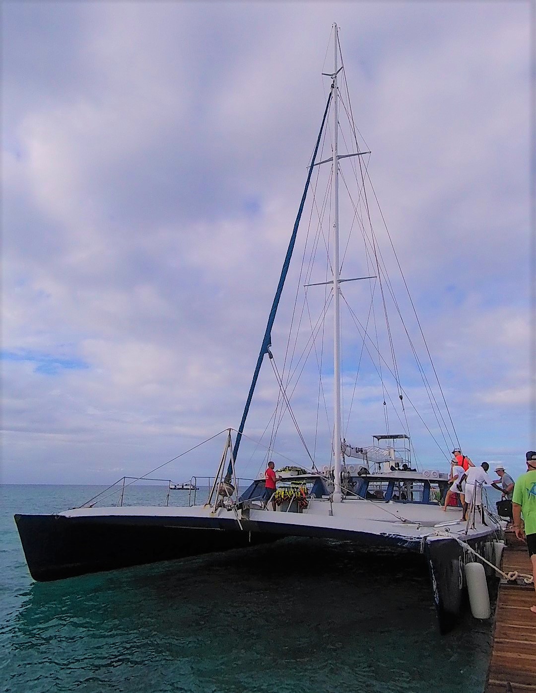 Landing at Grand Turk I was surprised to be able to see the whole island just from the sea. I later learned that Grand Turk is actually only 7 miles in length, having to be the smallest island I've ever been on. We were then led to a Catamaran for our excursion and let me tell you, this boat was huge! Much bigger than it looks in the picture, holding about 100~ people. As we sailed around the island we made small talk with some of our fellow ship members as the crew members were handing out some fruit punch and water. They stated that there would be some rum punch that they'd be handing out after our diving since they were a 'party boat.' We went pretty far out into the ocean to where a large reef was and we noticed that this must've been the prime spot to go snorkeling since the area was cluttered with other ships.