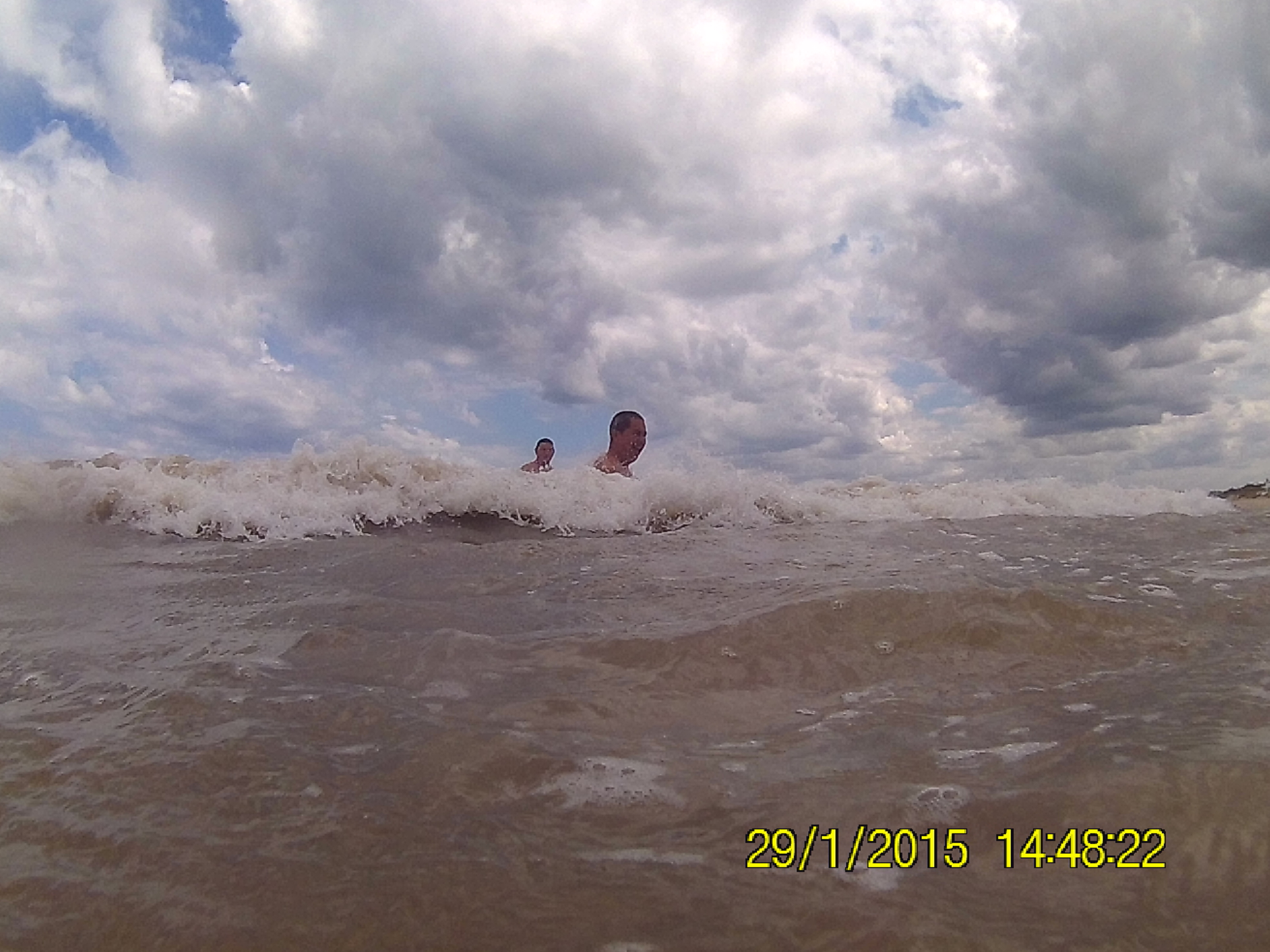 (Arriba), @comandoyeya y @pastorencina haciendose de los pibes sorteando las olas de Mar Chiquita.