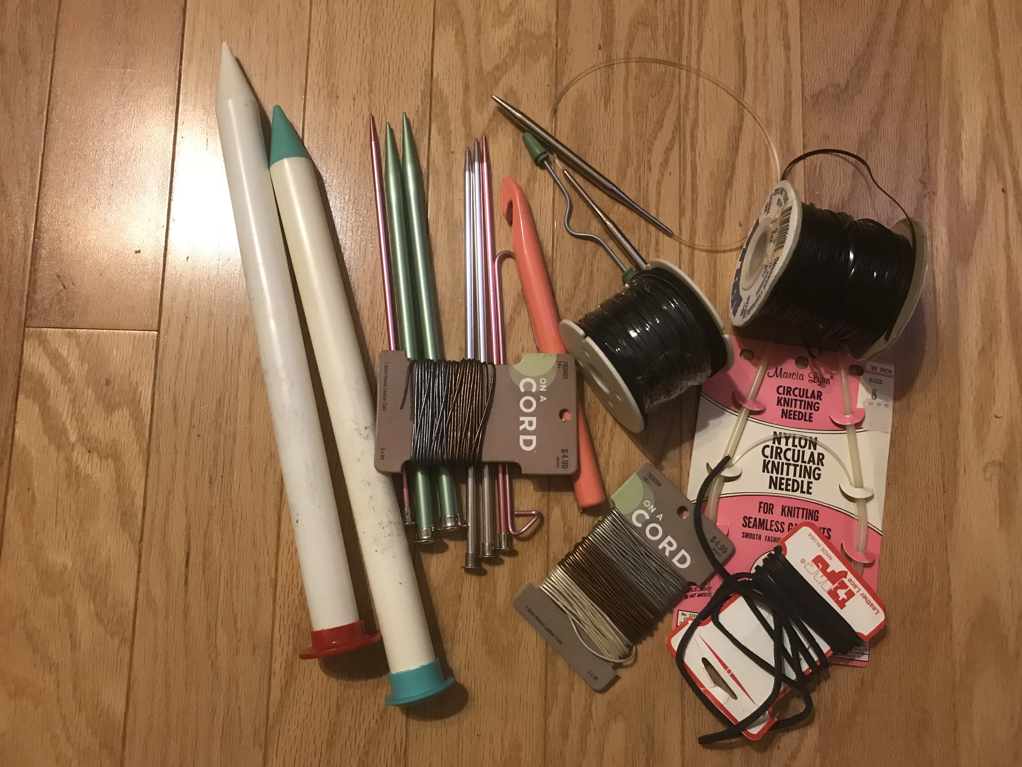 In the meantime, I have gathered my knitting book, my knitting needles in various sizes, my leather, suede needles and patterns so that I can be productive in my down time.