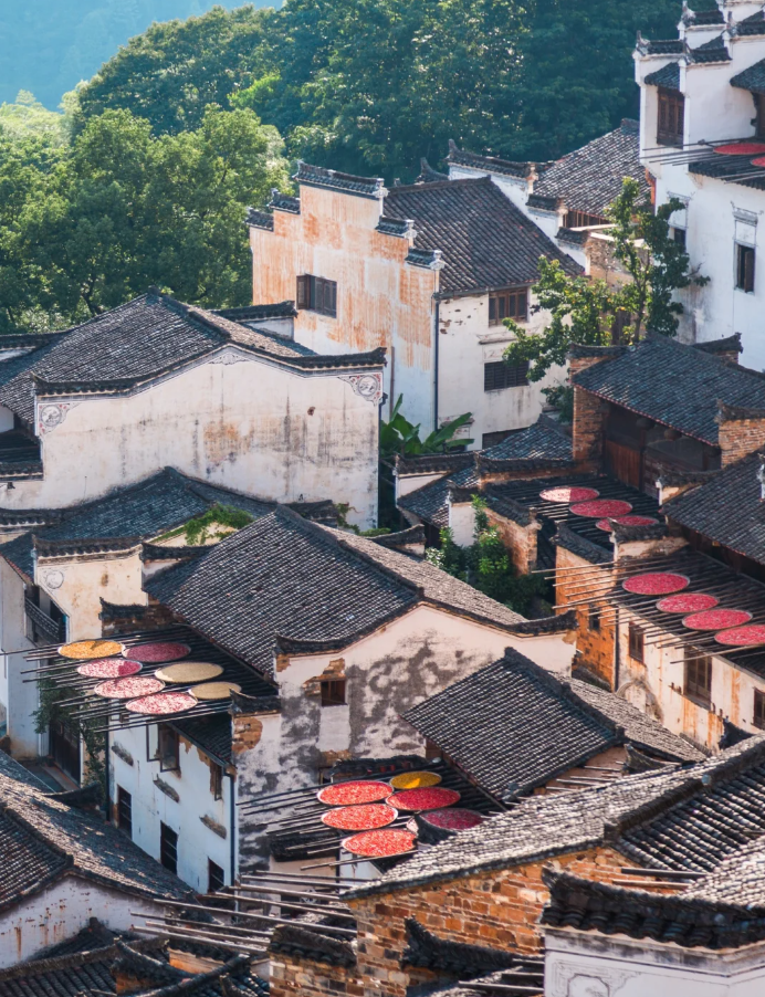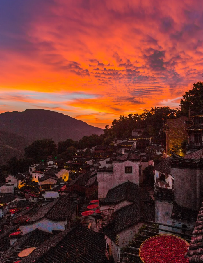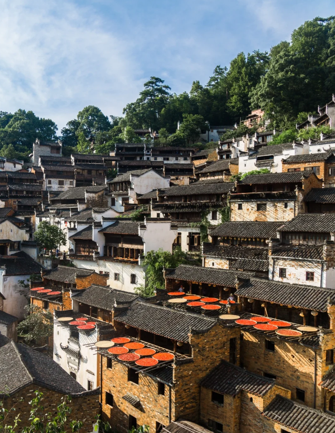 以晒秋闻名的古徽州风情村落,以山而建层层叠叠,家家户户的阳台上都晒着秋天的收获,非常的壮观,不仅如此,这里的秋天是真的美,金色的稻田、火红的枫叶等等。