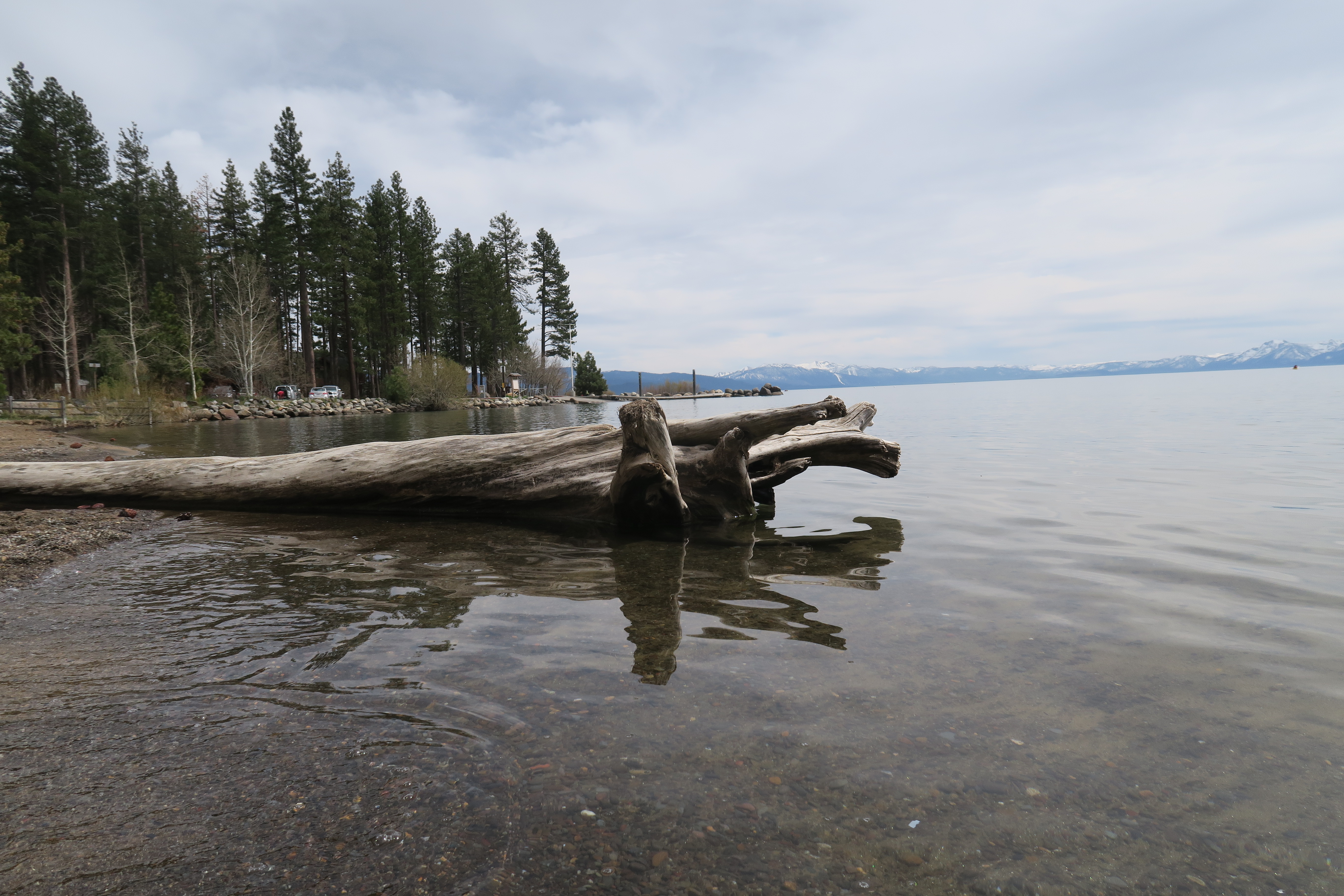 The water from Lake Tahoe comes from the runoff from the mountains that occurs when the snow melts each spring. It is one of the cleanest lakes I have ever visited. When you look down at your feet, the water is crystal clear. It is also icy cold, so it's hard to be in the water for a long length of time.
