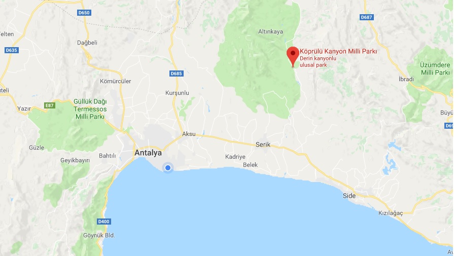The distance to Antalya city center is about 82 km. It was declared a national park in 1973.