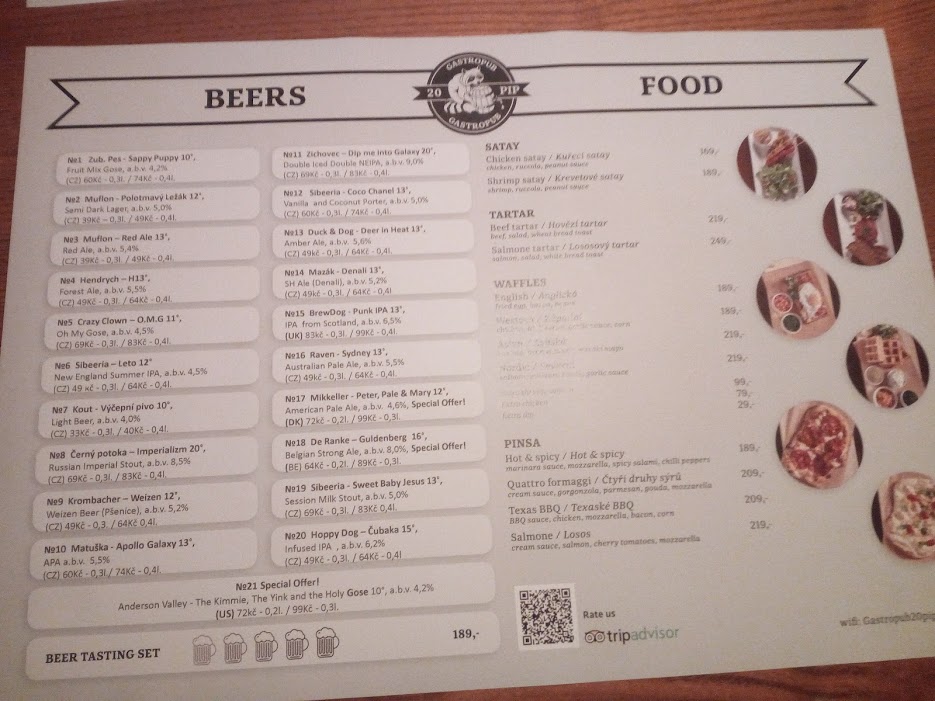 The menu is very wide and comprises, by default, at least 20different types of craft beers from Czech Republic and other countries of the world, all on tap. The beers are always rotating and new ones are added every once in a while, so rest assured you will never get bored here!