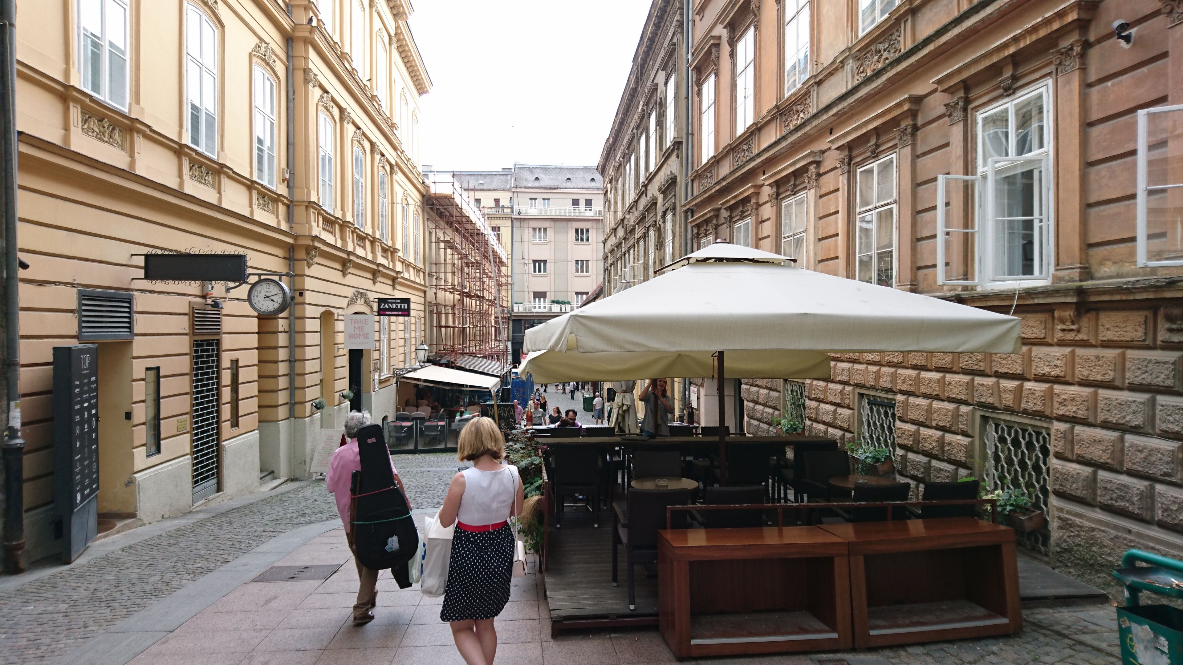 Dolac is taking us to Skalinska street. It is a small and narrow steet filled with restaurants. There are two Italian resaturants and one is Asian fusion. You will notice that on the streets of Zagreb there are no people, but the restaurants and cafes are full of people.