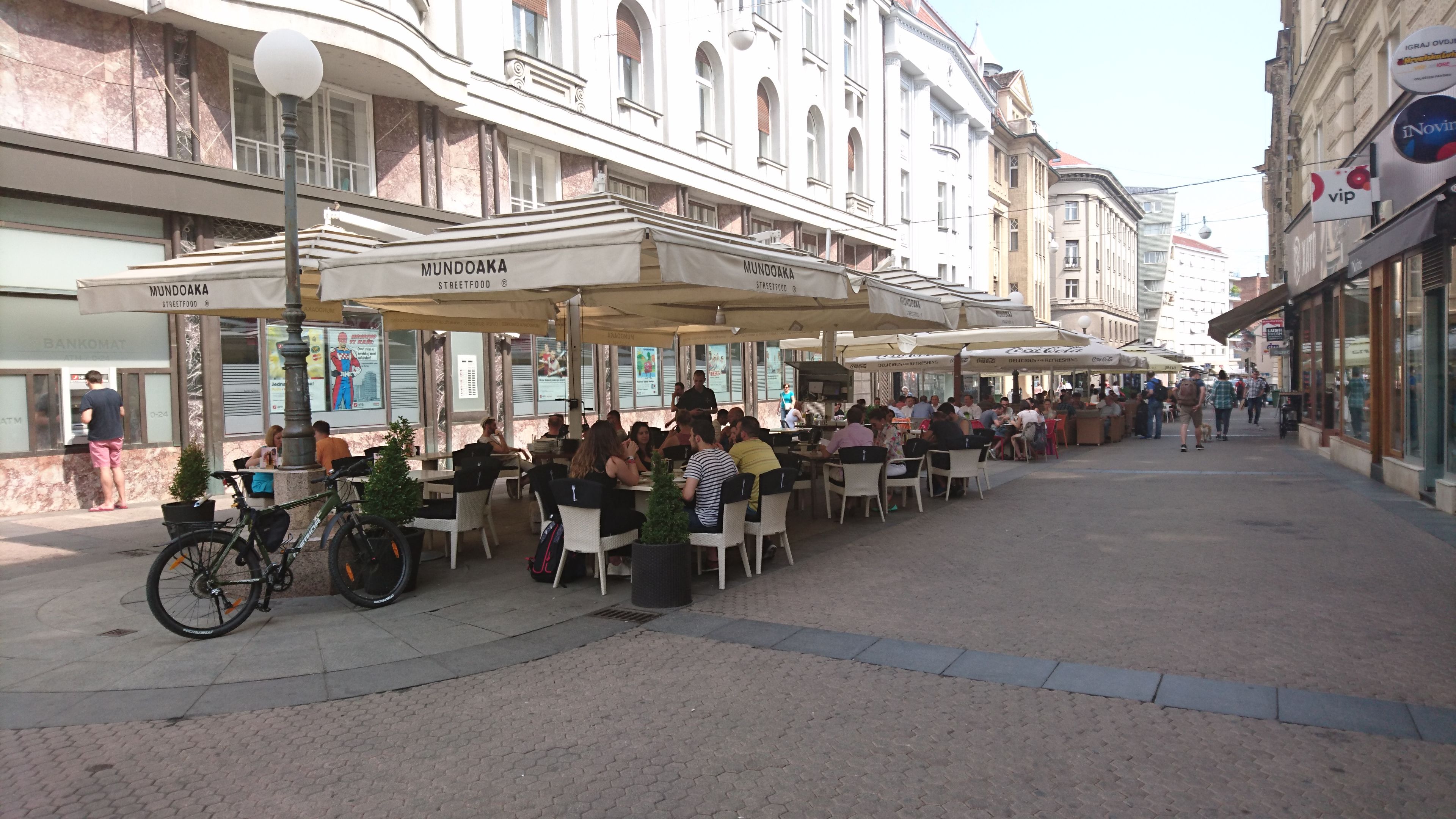 Let's begin! Outside my workplace is the famous street food restaurant Mundoaka! It is one of the most visited restaurants in Zagreb. Many tourists prefer Mundoaka because it is highly rated on Tripadvisor. The address is Petrinjska street number two.