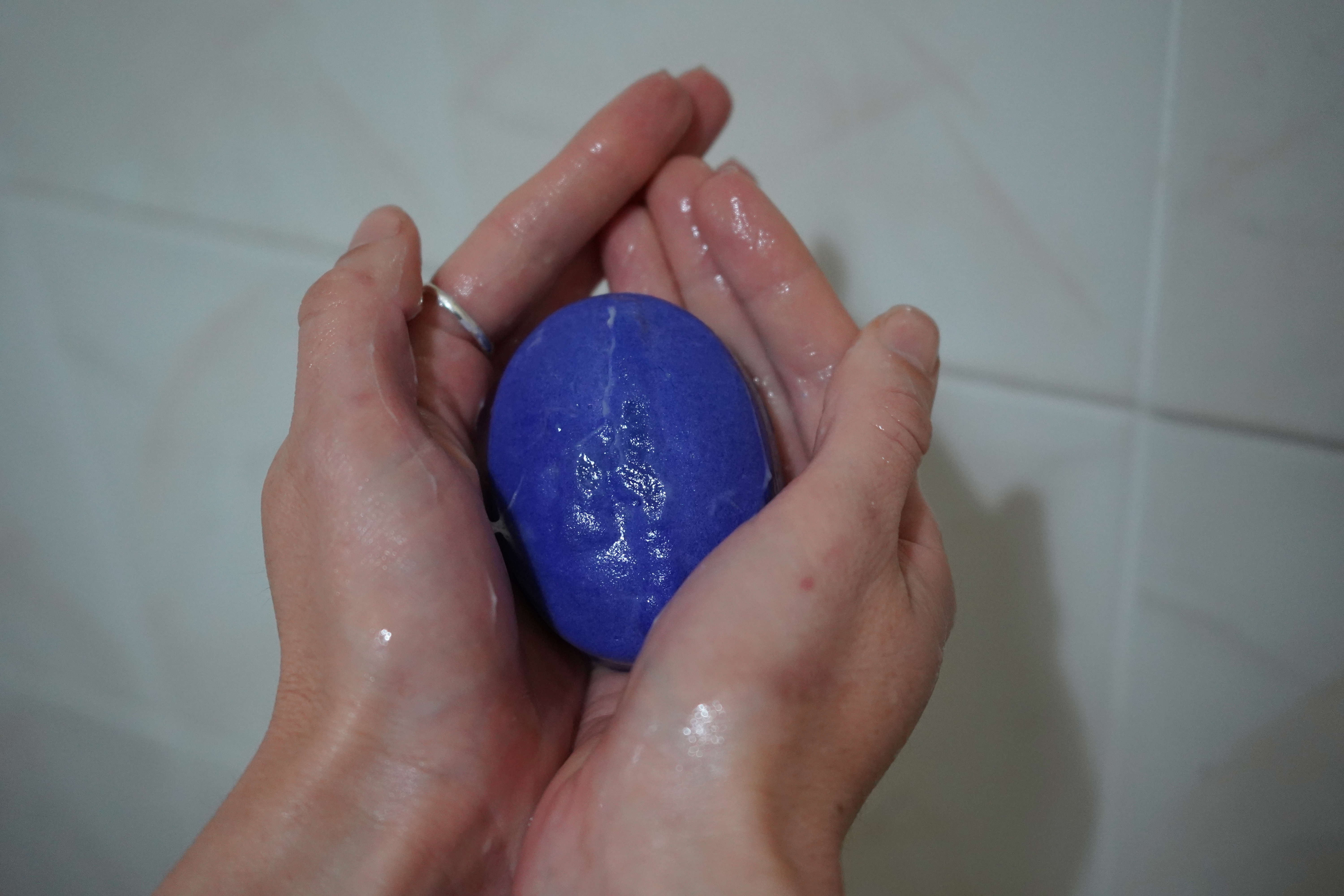I was a little put off by the colour and concerned at just how much this bar would emulsify once I added some water but it was great and I didn't need a lot of it to wash my hair. As soon as you begin to massage the bar in your hands there is a slight blue colour but the colour almost disappears once added to your hair. I loved this shampoo bar, it did exactly what it said it would, leaving my hair clean and ultimately not dried out.