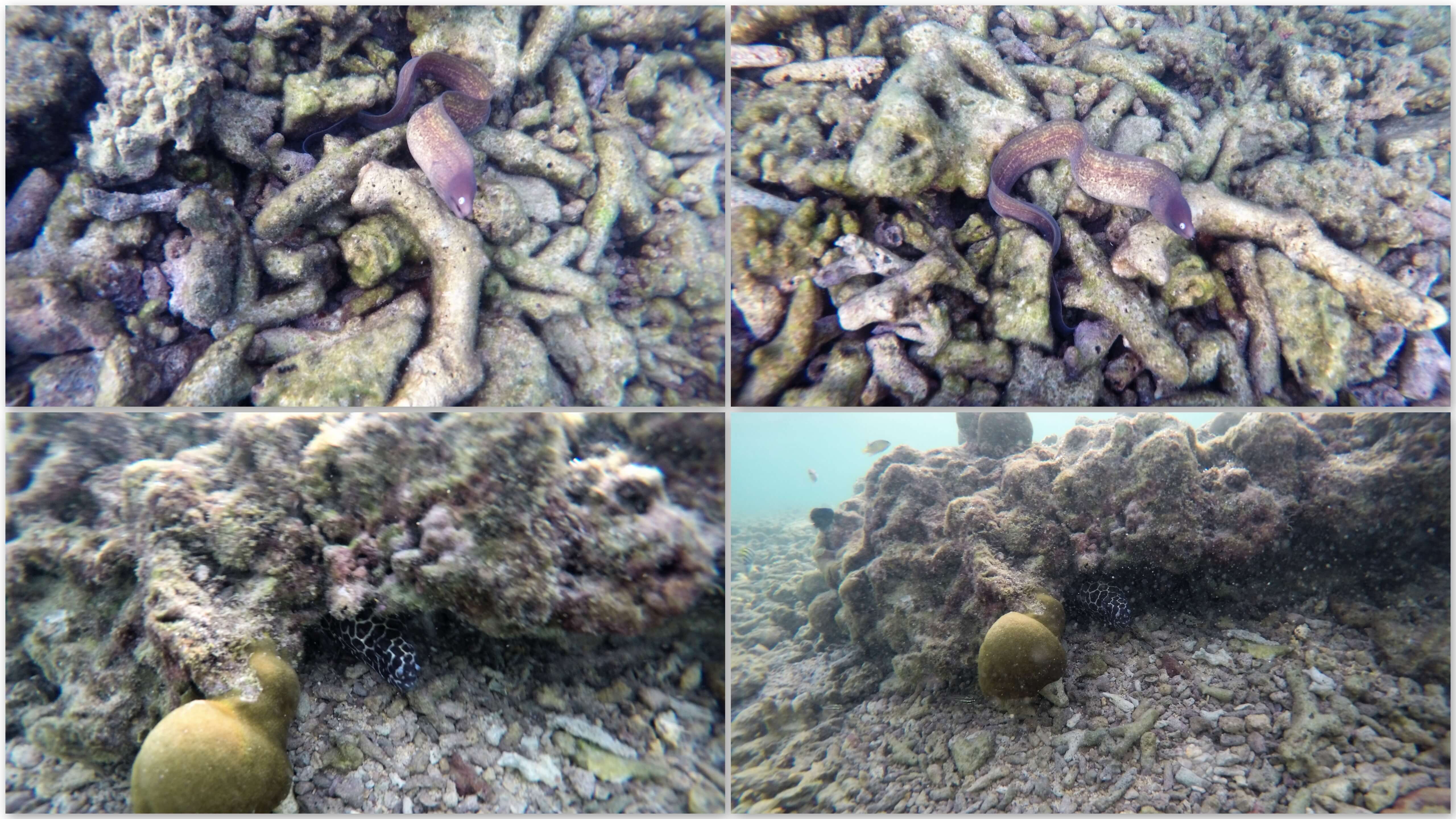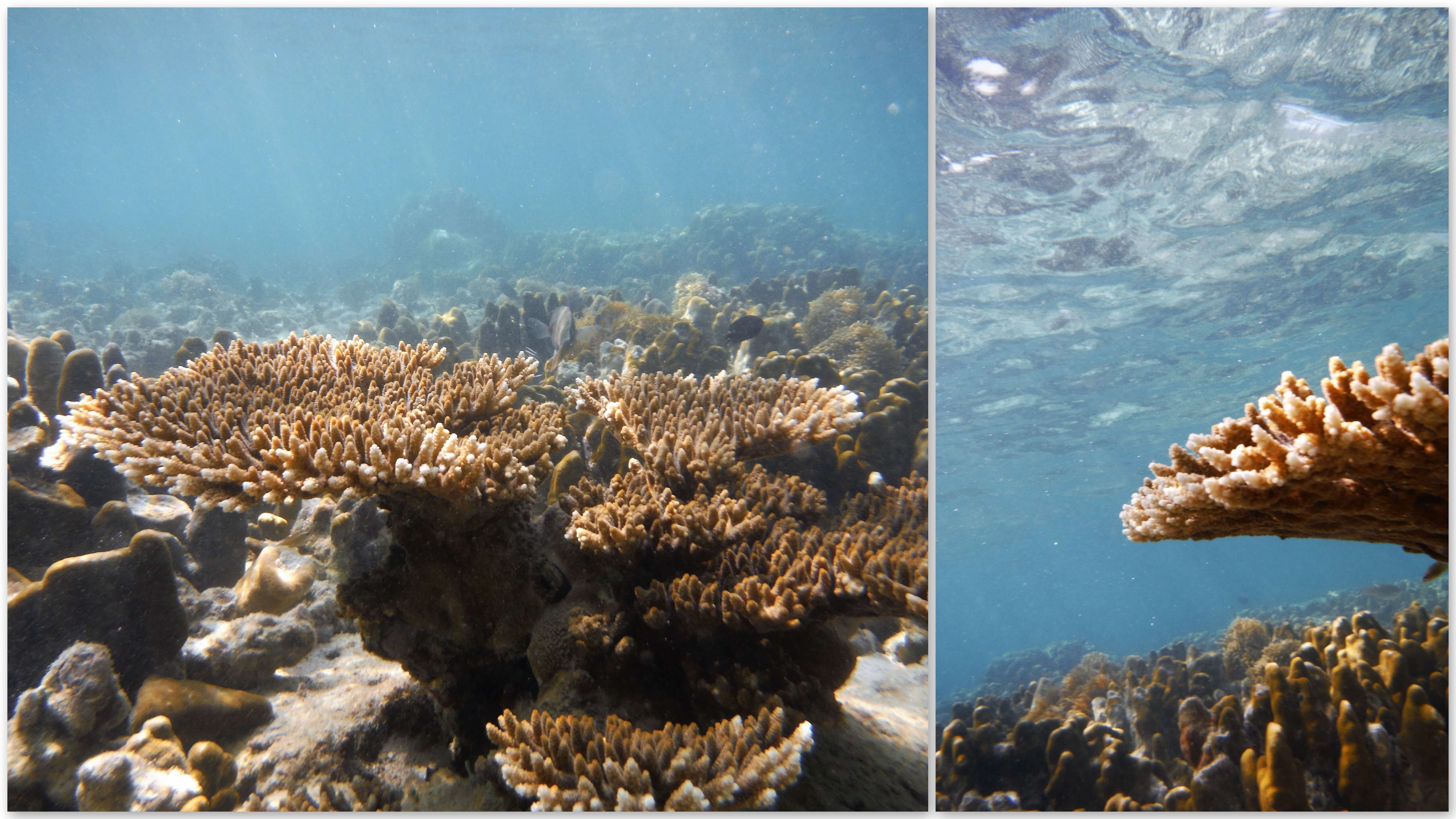 In the last photos unfortunately the longtail boats drove through. The reef is damaged there, but still houses living things.