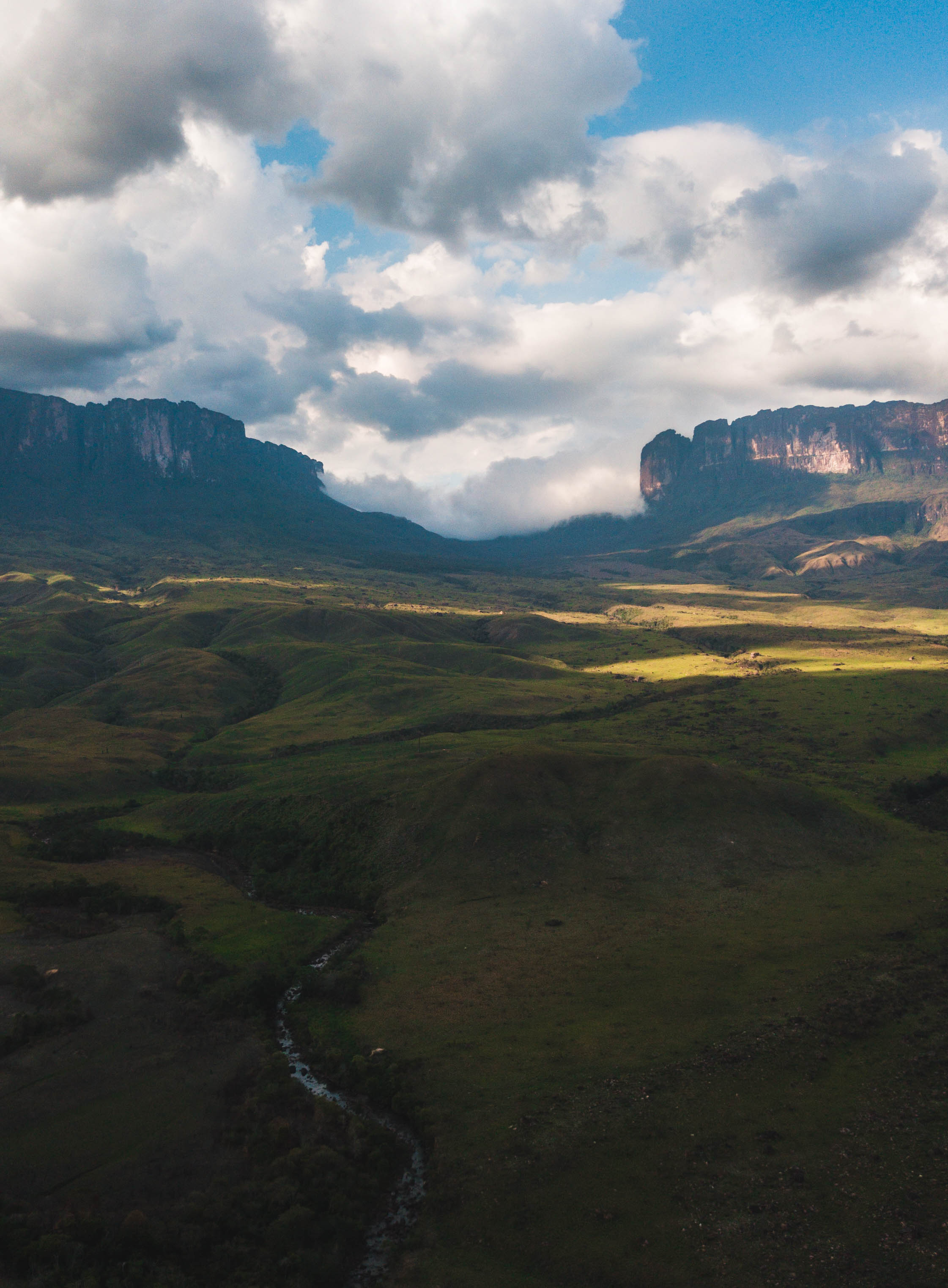 in this photo you can see Mount Roraima on the right and Mount Kukenan on the left