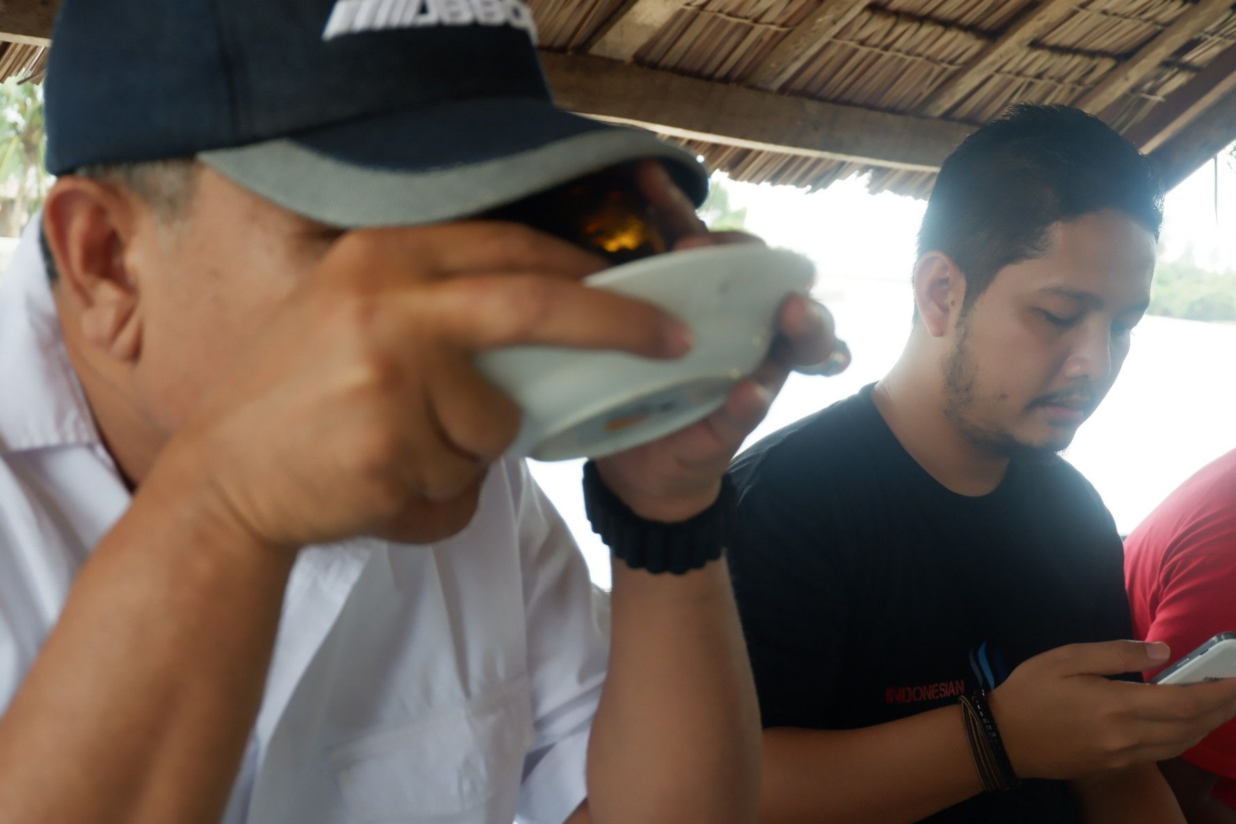 Another way to taste this coffee was by sipping through the side of the mini plate. It is like this man doing but I don't recommend this way if you guys have a thick mustache due to the coffee powder stuck in your upper mouth fur. Whatever the style you choose, this coffee was good to try, especially for us who just arrived in town.