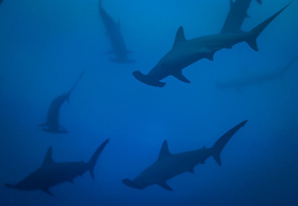It took me a second to realize the dive had just started; we had only been underwater for 10 minutes. As I looked towards the surface, watching my air bubbles rise in the current, I was again stunned to see more sharks. A school of hammerheads was moving right above us.