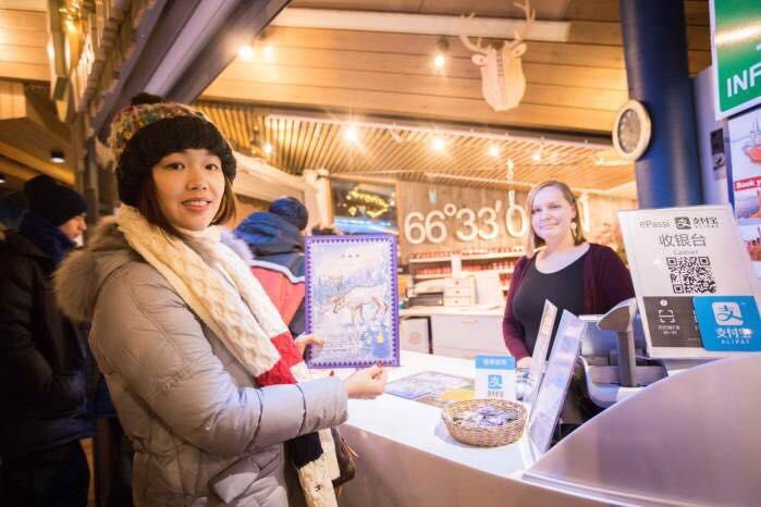 In Santa Claus Village, the entrance of the gate, a long white line, marked 66 degrees north latitude and 33 points, yes, this is the "Arctic Circle line"! The north of this line is in the Arctic. These two days, China visitors to one thing Santa Claus Village will do, is to take pictures on both sides of the feet across the dividing line, and the purchase of a representative of their Alipay across the Arctic certificate.