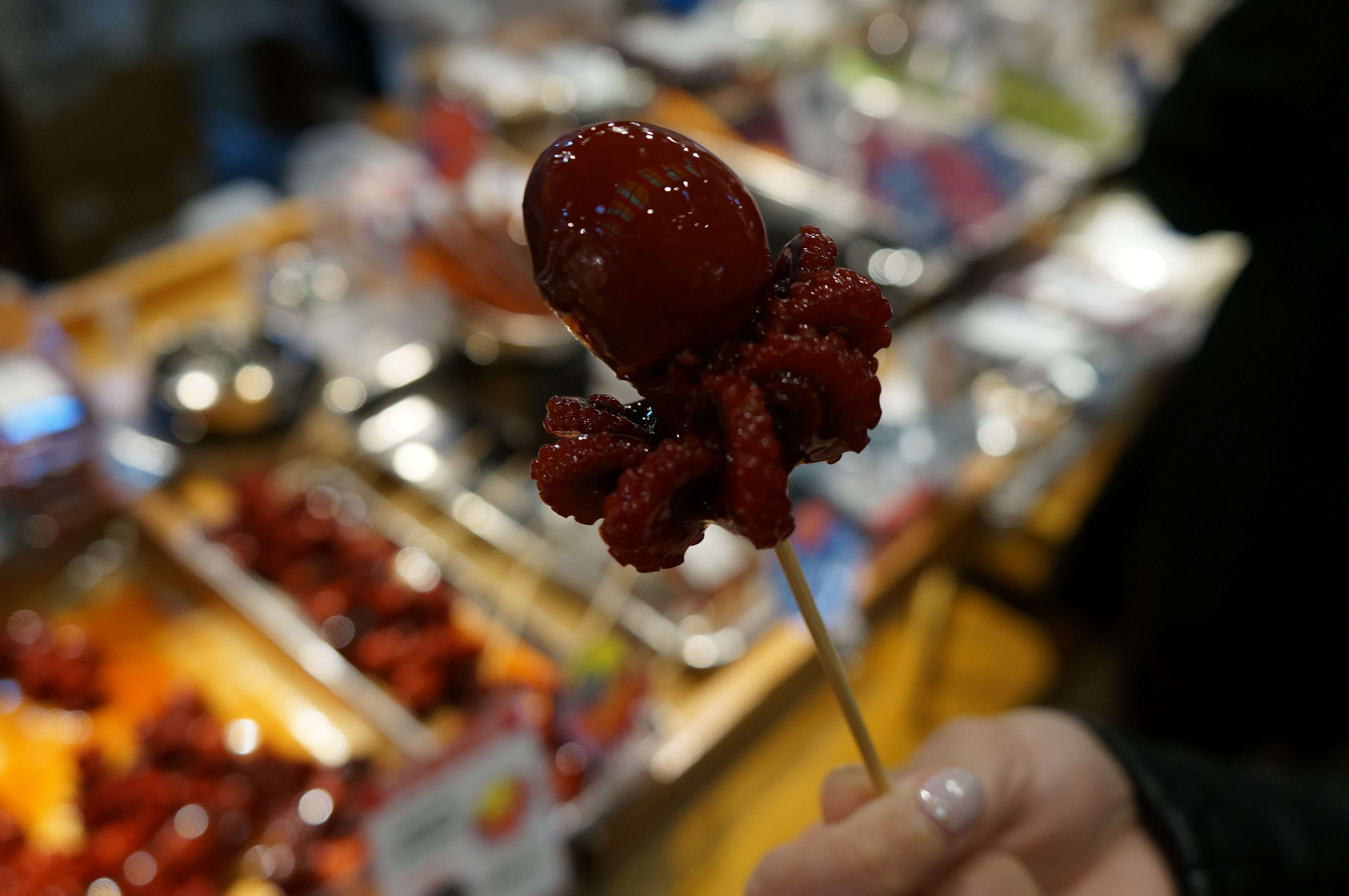 Some of the shops freely give out samples or sell sample dishes and skewers meant to be eaten then and there.