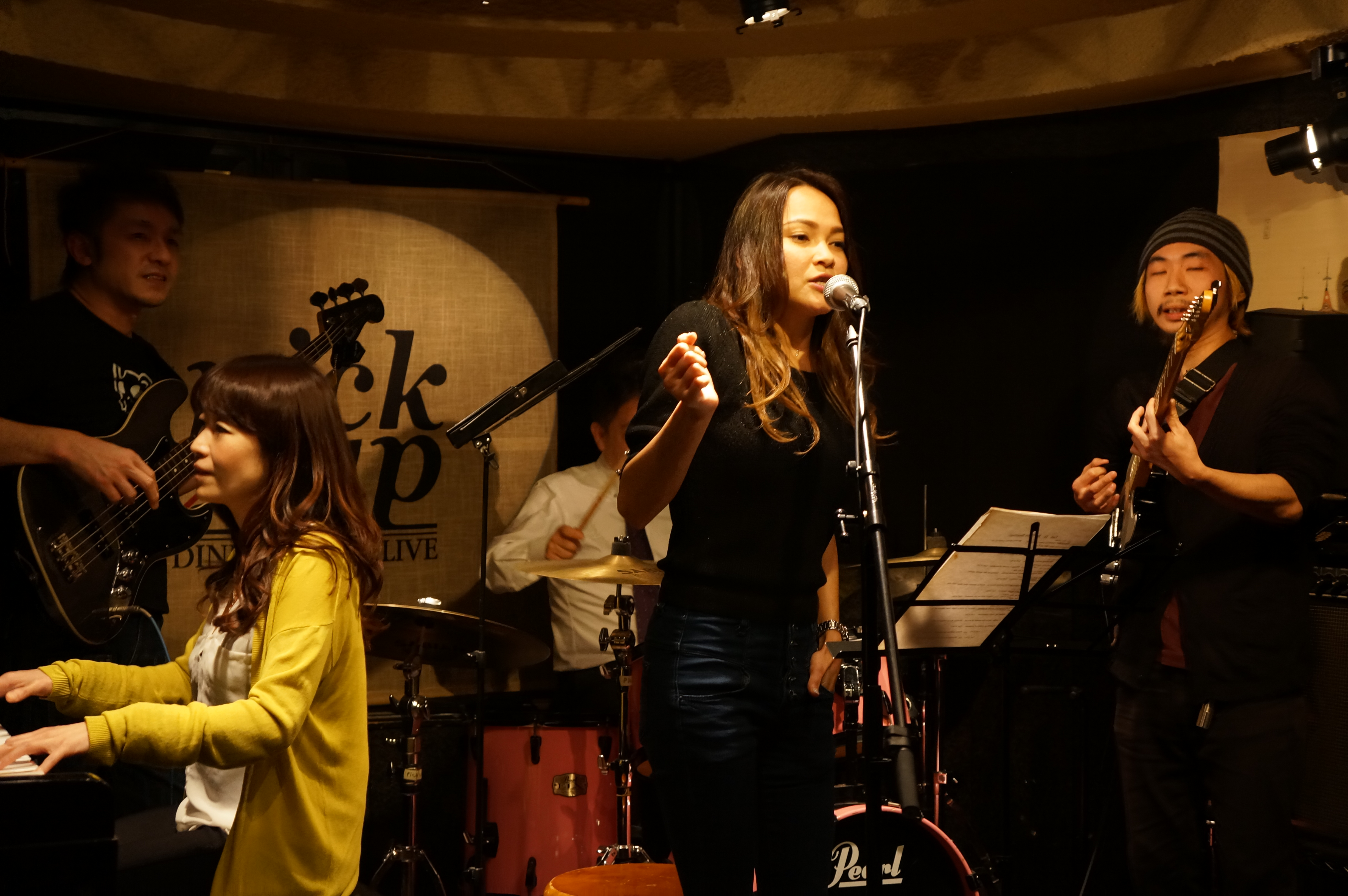 She is originally from the Philippines and i dont know why but i think all of them can sing haha and when the band started again they asked her to join! She became shy ...and mad at me: "i have never been singing with a band or in front of an audience".