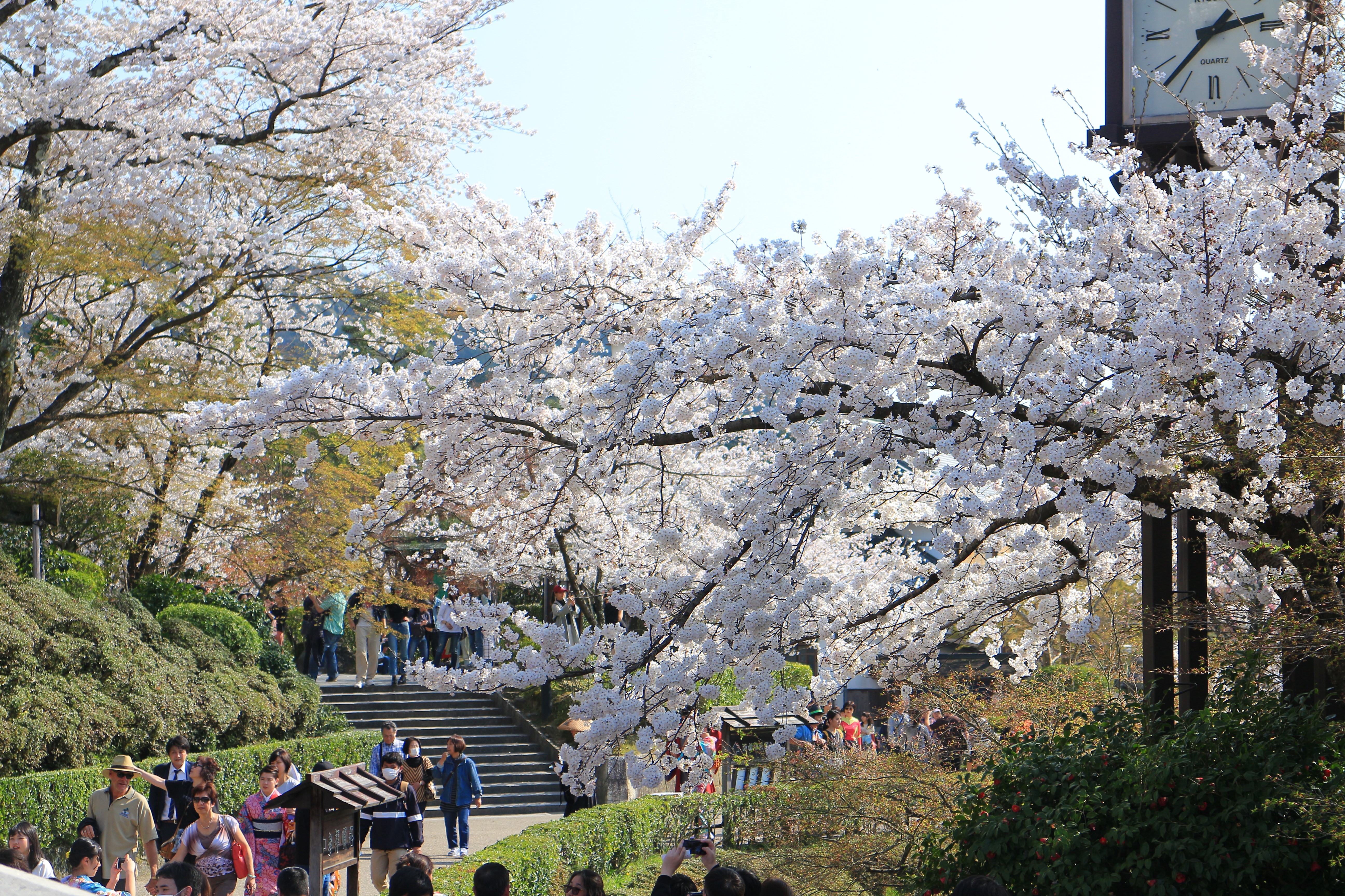 除了美麗的粉櫻之外,清水寺內也有純潔白色的櫻花,我只能很感謝室友誤打誤撞的訂了那時候的機票~((當初還一直碎念他買太貴 :P))